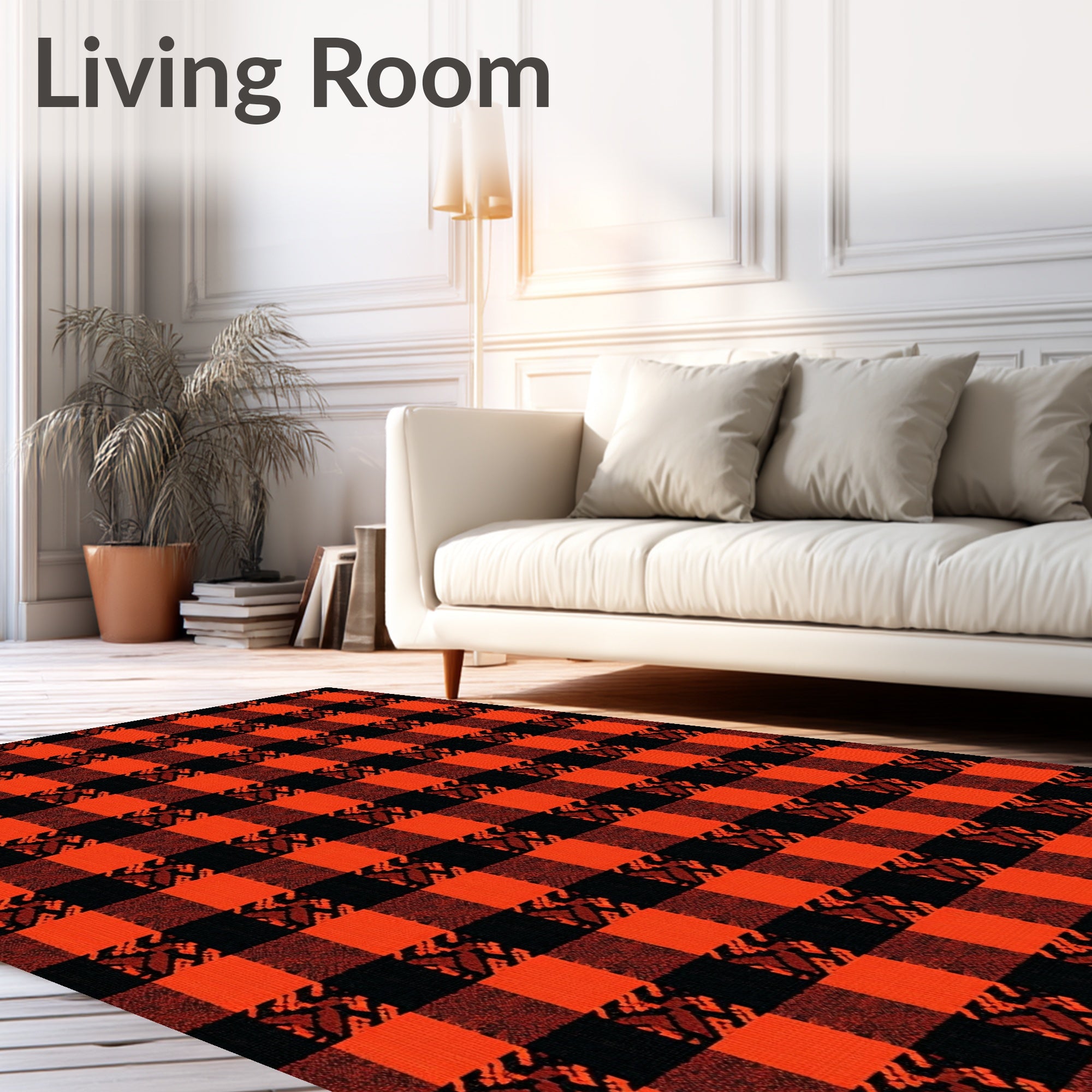Ultra Soft Area Rug, Non Slip, Stain Resistant, Washable Area Rugs for Living Room, Bedroom, Autumn Equinox Checkered(Orange) Overview: