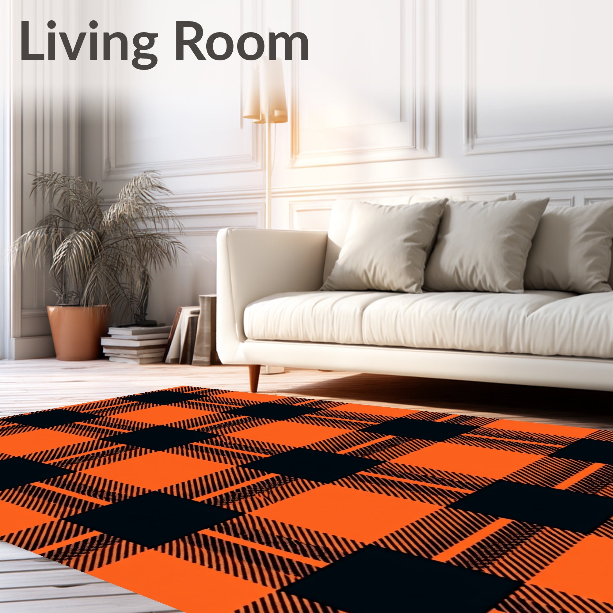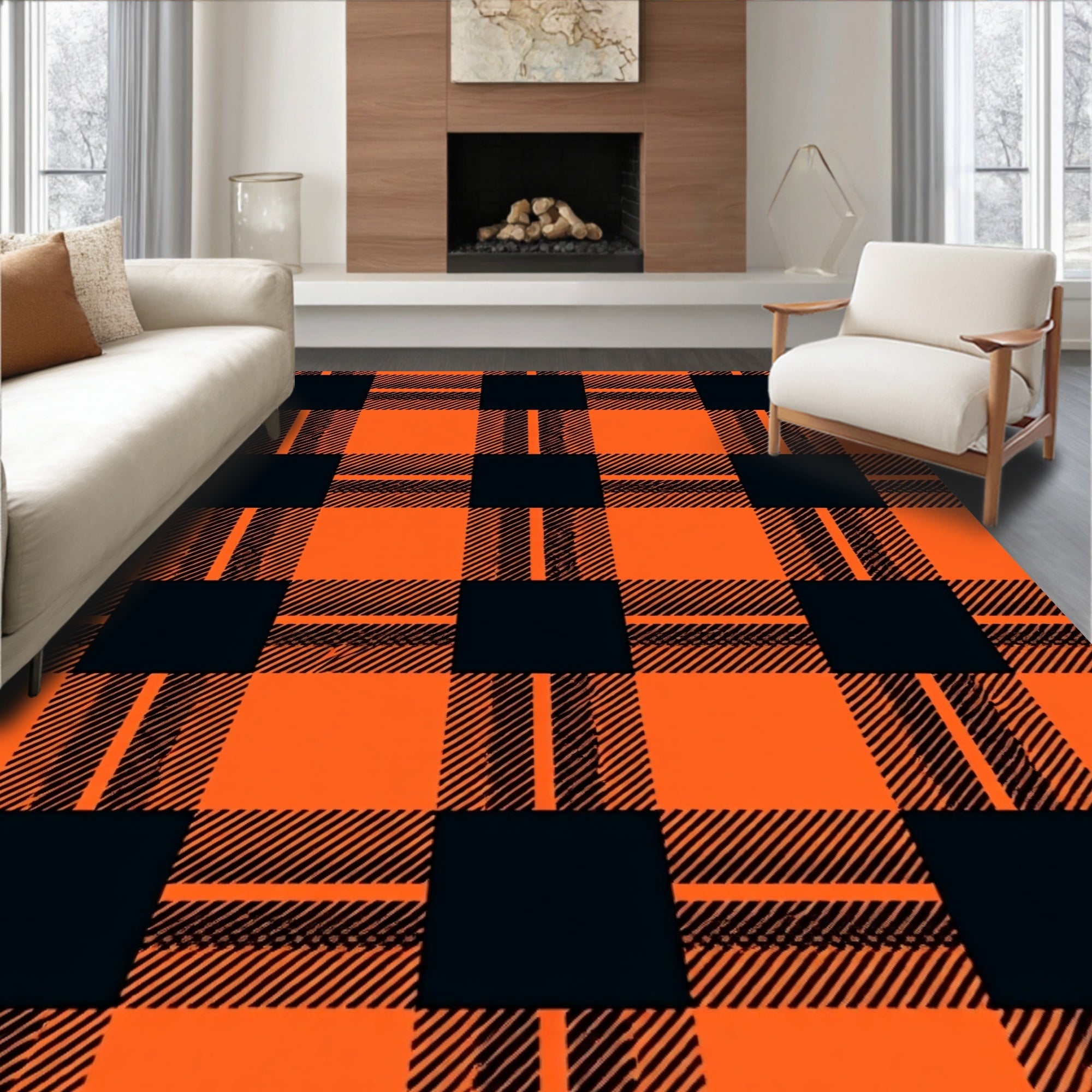 Ultra Soft Area Rug, Non Slip, Stain Resistant, Washable Area Rugs for Living Room, Bedroom, Autumn Gingham Tapestry(Orange) Overview: