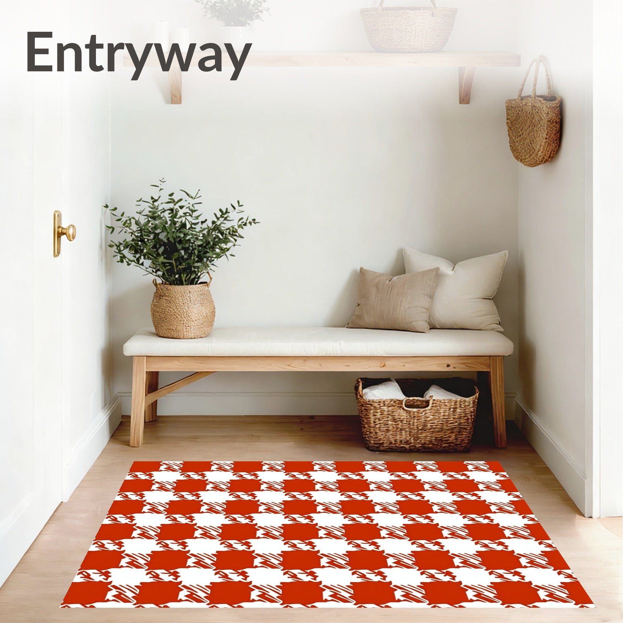 Ultra Soft Area Rug, Non Slip, Stain Resistant, Washable Area Rugs for Living Room, Bedroom, Autumn Harvest Checkered with Bold Plaid Design(Red) Overview: