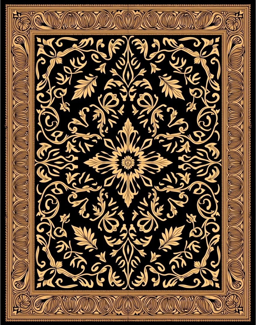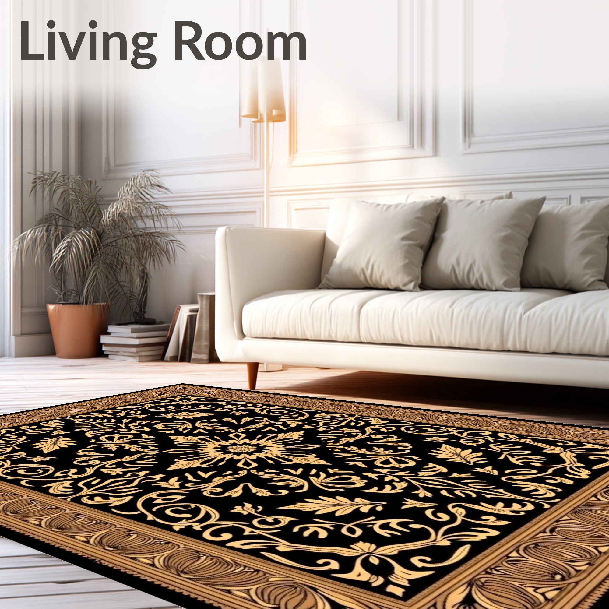 Ultra Soft Area Rug, Non Slip, Stain Resistant, Washable Area Rugs for Living Room, Bedroom, Autumn Harvest Damask with Ornamental Leaf Scrollwork(Black) Overview: