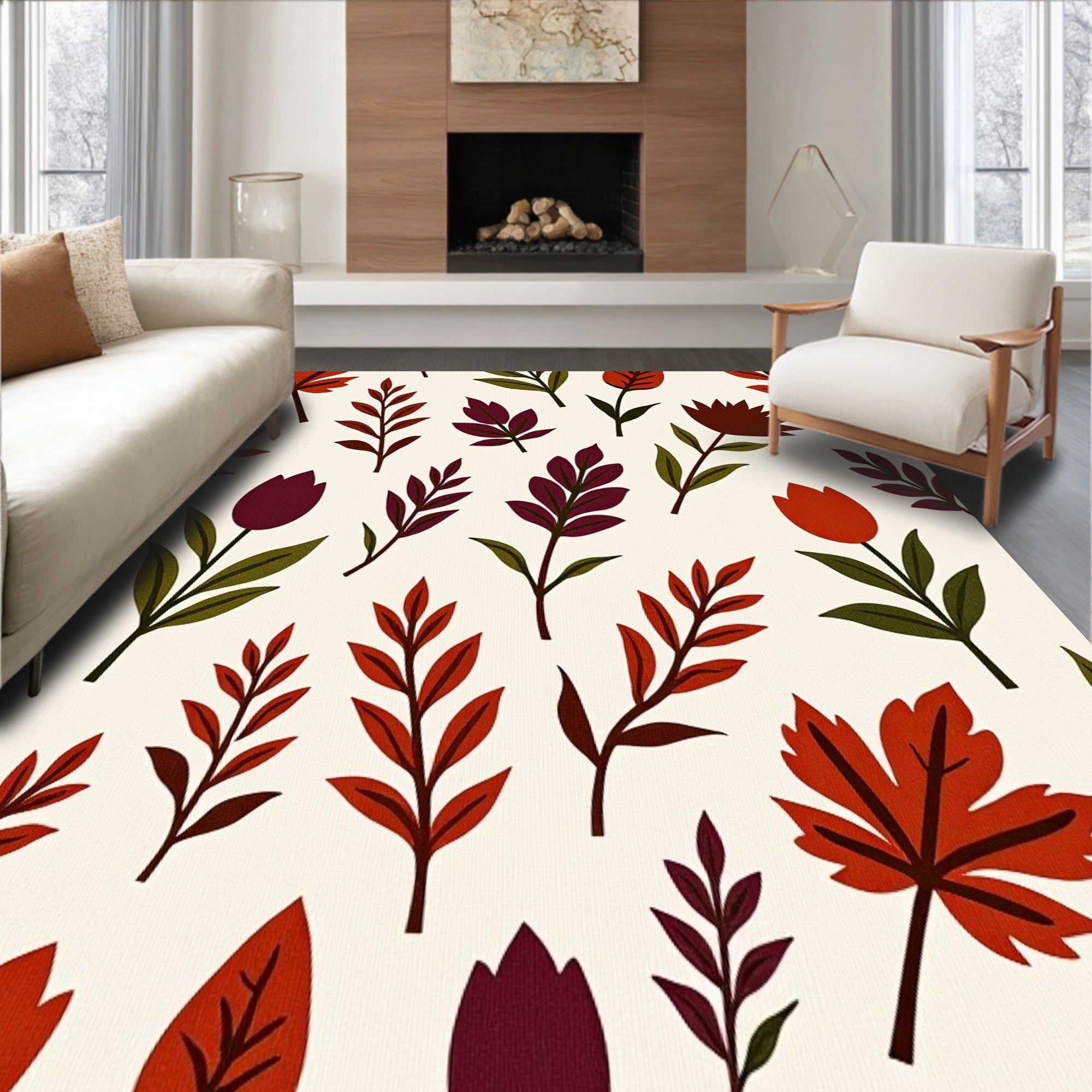 Ultra Soft Area Rug, Non Slip, Stain Resistant, Washable Area Rugs for Living Room, Bedroom, Autumn Harvest Herb Garden Design Anti Slip(Orange) Overview: