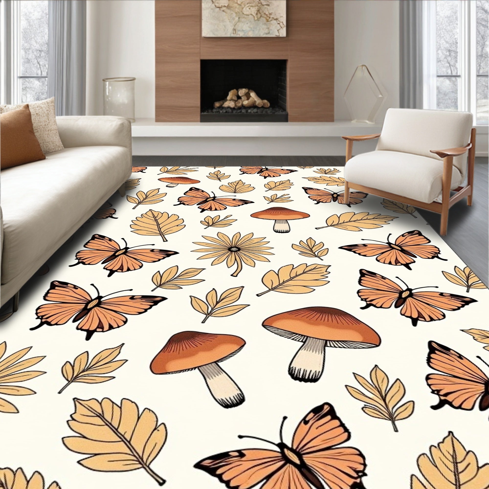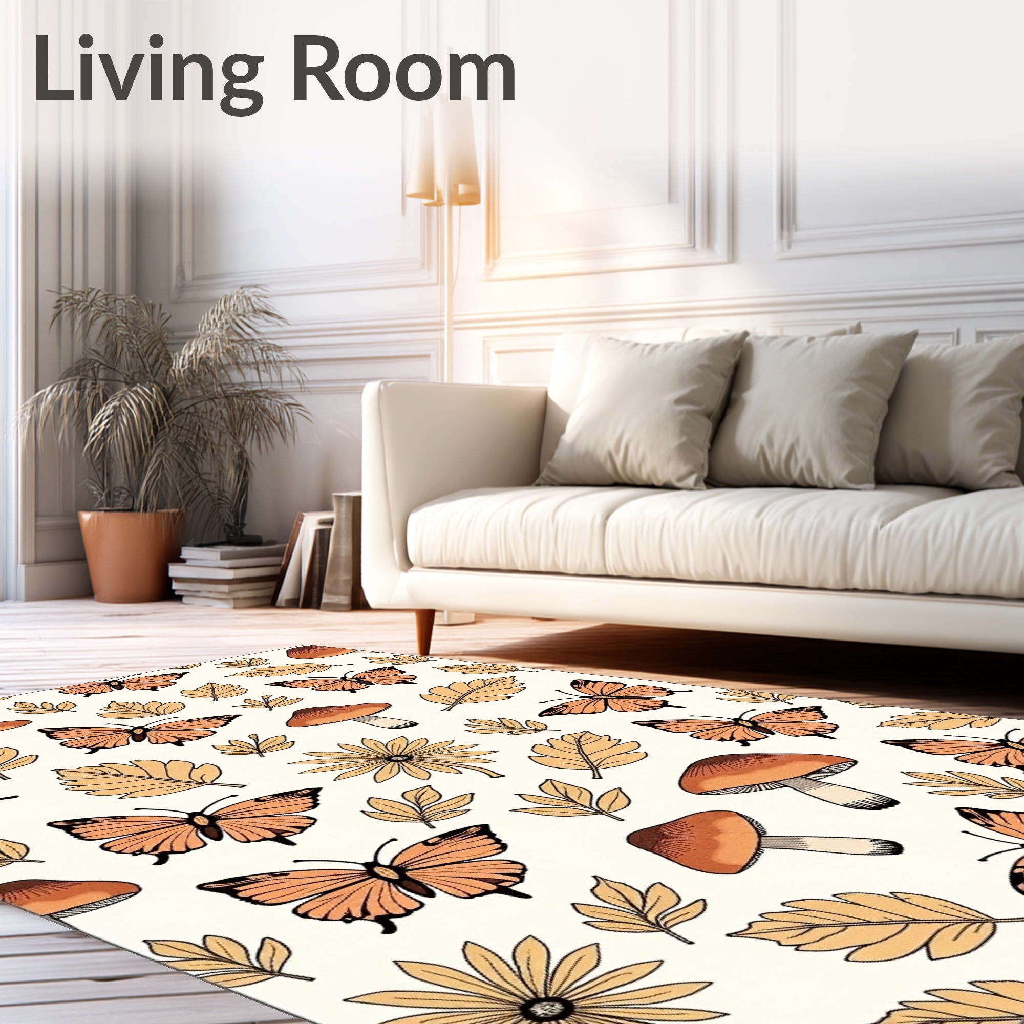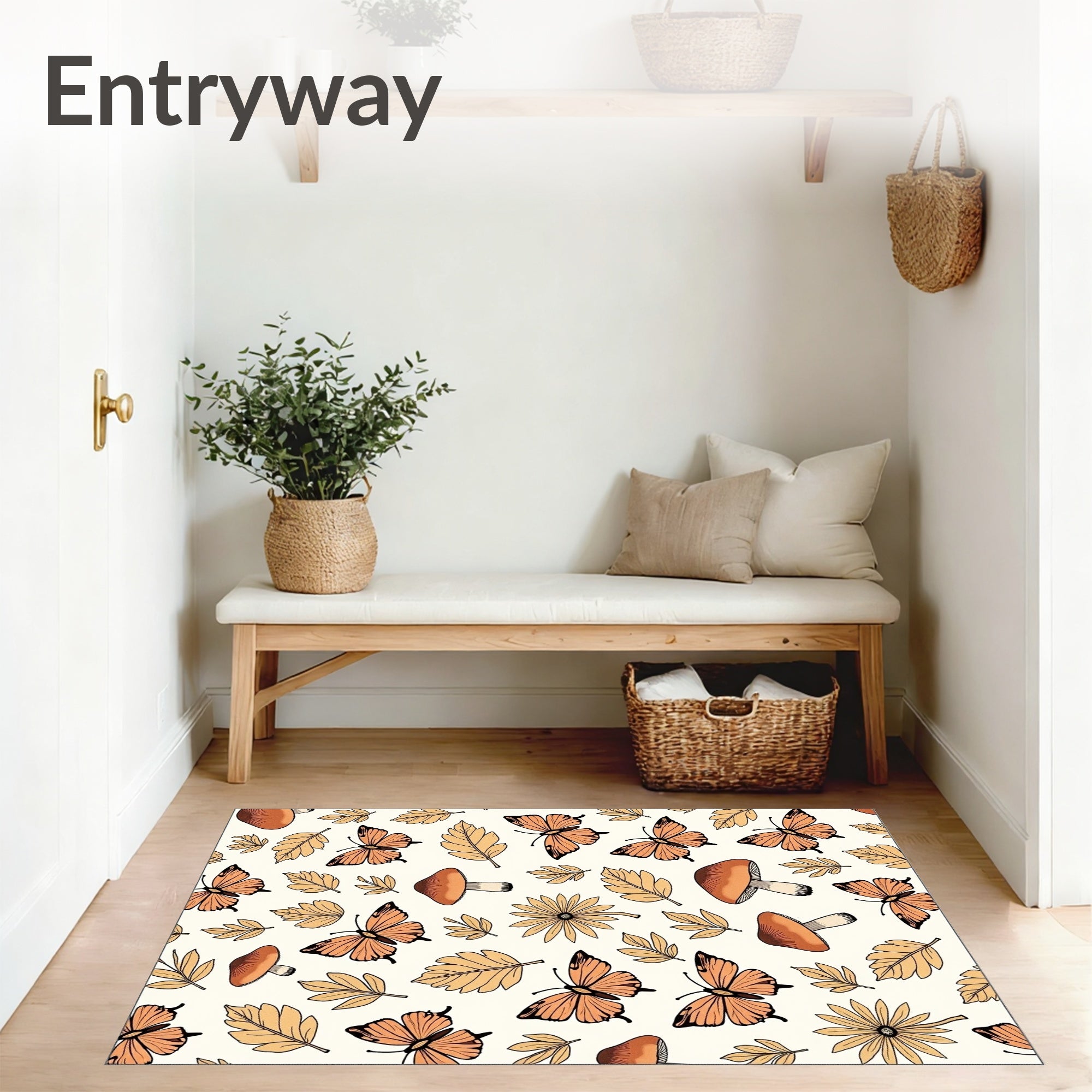 Ultra Soft Area Rug, Non Slip, Stain Resistant, Washable Area Rugs for Living Room, Bedroom, Autumn Harvest Lepidoptera Collection Decorative Walkway(Orange) Overview: