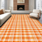 Autumn Harvest Plaid Area Rug Fall Doormat Combo Set(Orange)