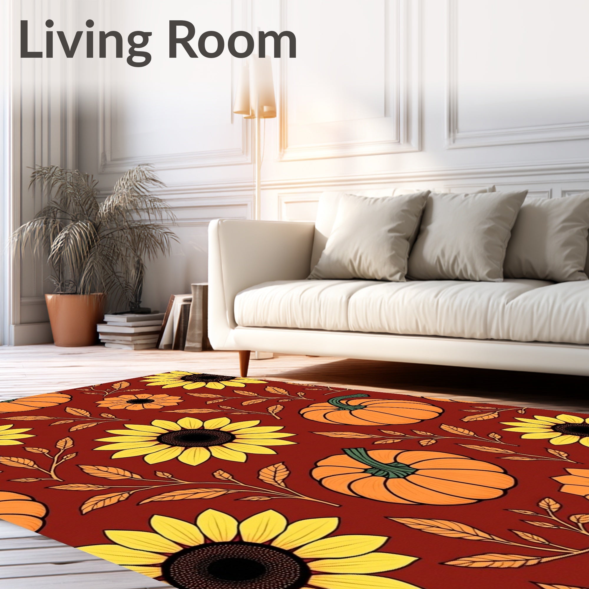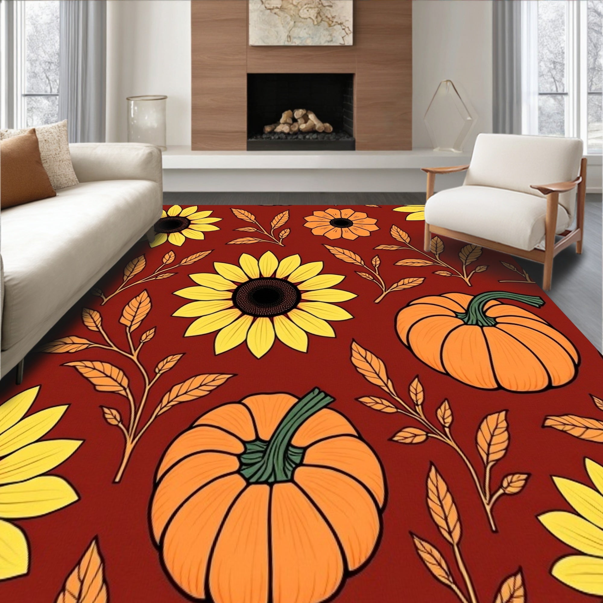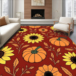 Ultra Soft Area Rug, Non Slip, Stain Resistant, Washable Area Rugs for Living Room, Bedroom, Autumn Harvest Semicircle Entrance Sunflower Pumpkin Decorative(Red) Overview: