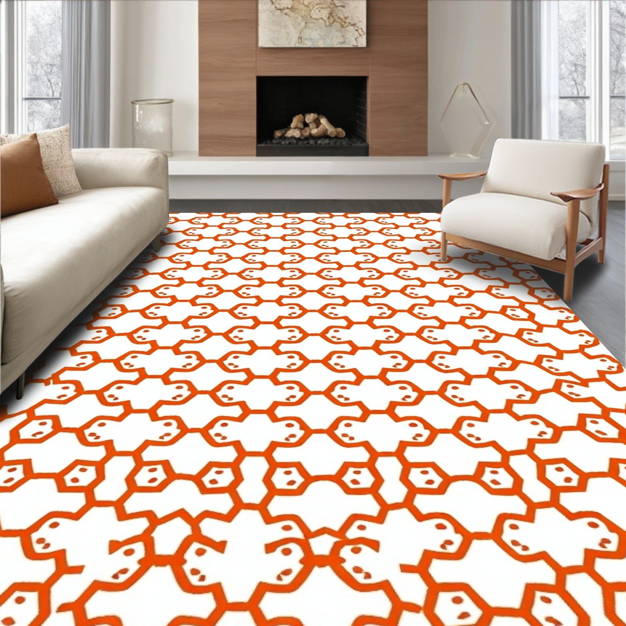 Ultra Soft Area Rug, Non Slip, Stain Resistant, Washable Area Rugs for Living Room, Bedroom, Autumn Honeycomb Lattice Decorative Entrance Welcoming Floor(Orange) Overview: