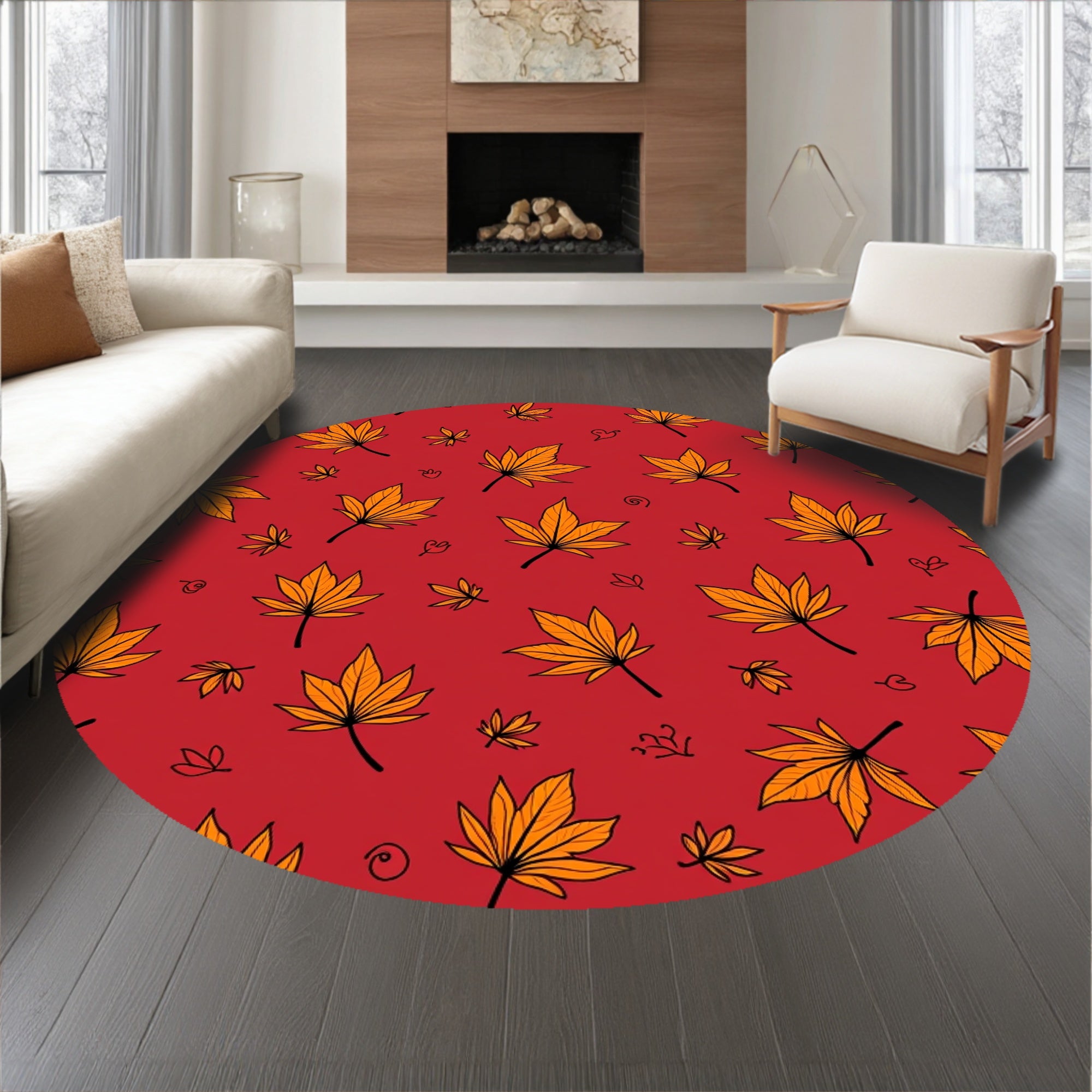 Autumn Leaves Falling Seasonal Motif Floor Covering(Red)