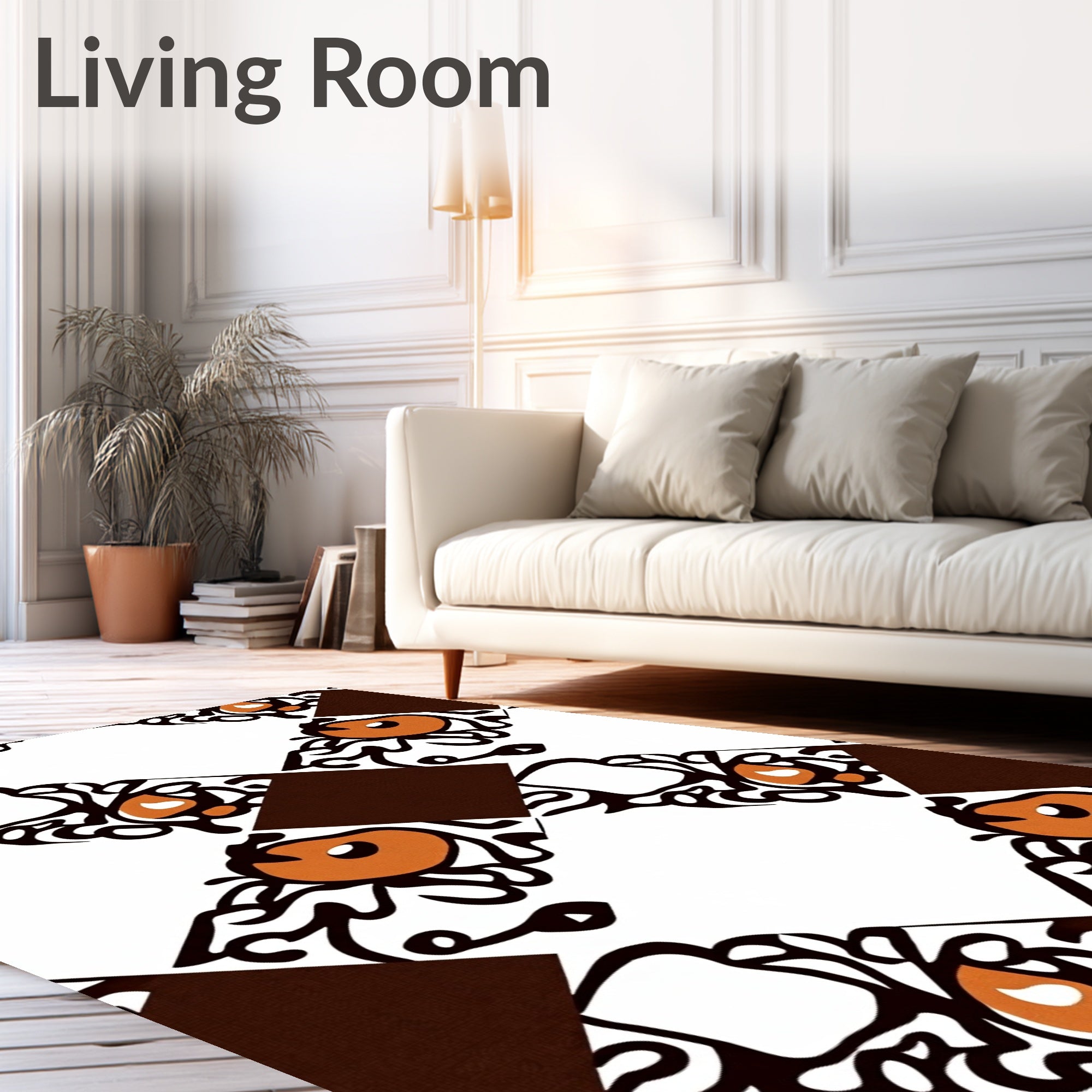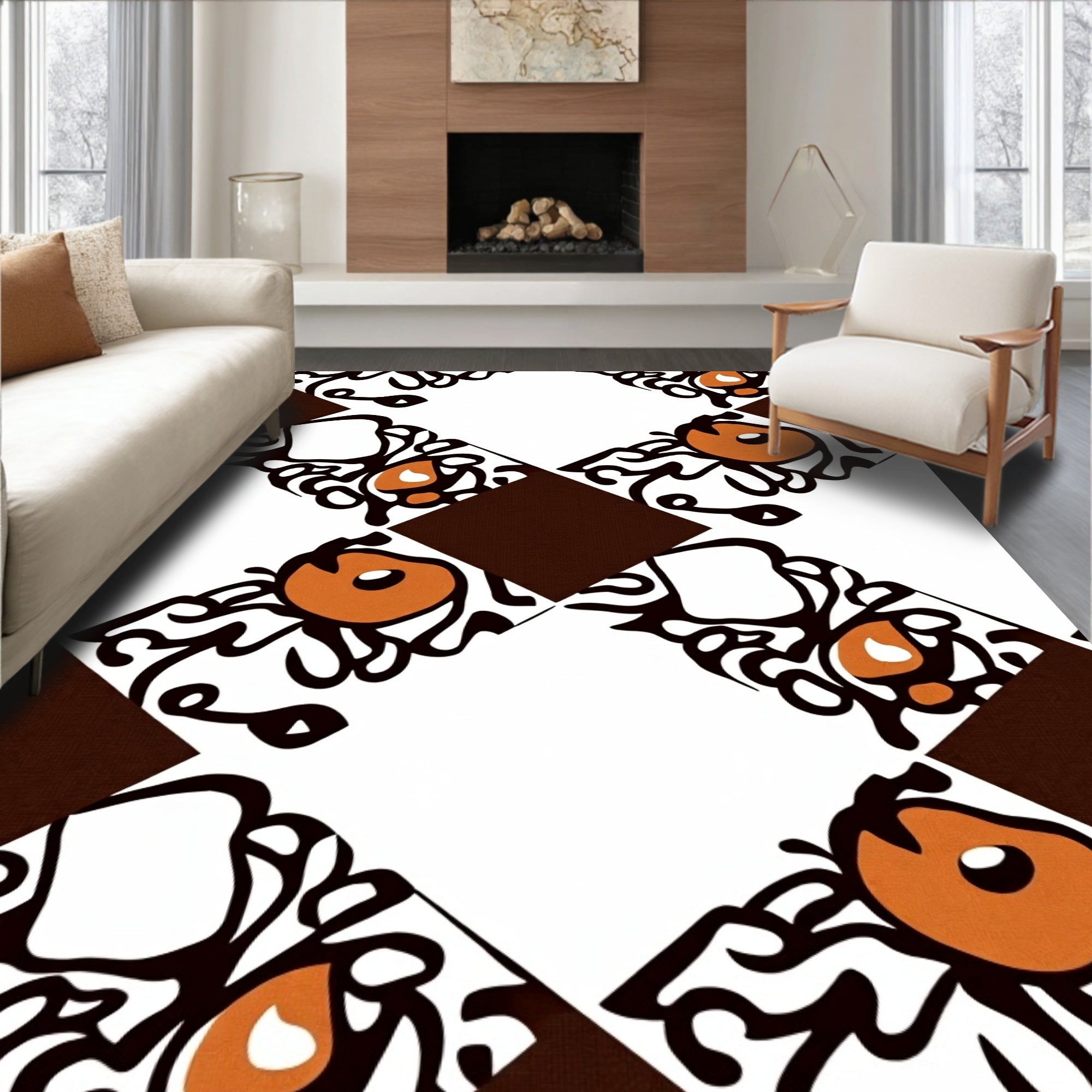 Ultra Soft Area Rug, Non Slip, Stain Resistant, Washable Area Rugs for Living Room, Bedroom, Autumn Orchard Tartan Check with Artistic Pumpkin Filigree(Brown) Overview: