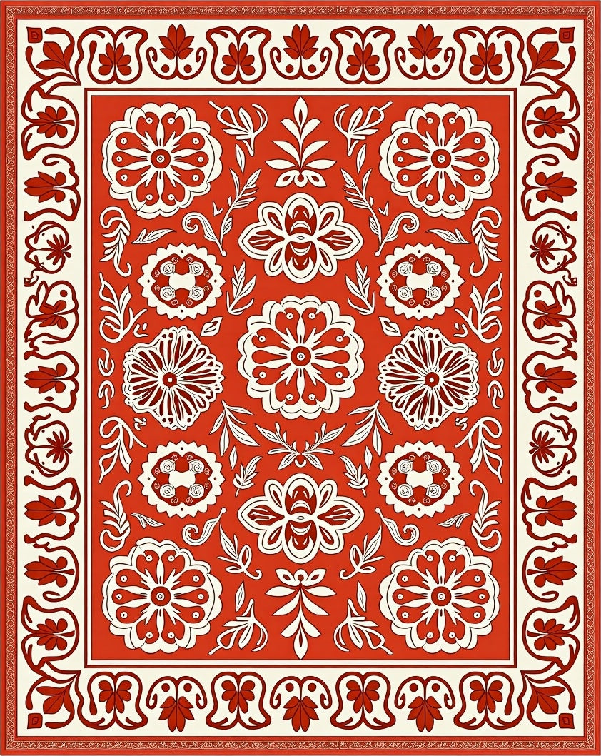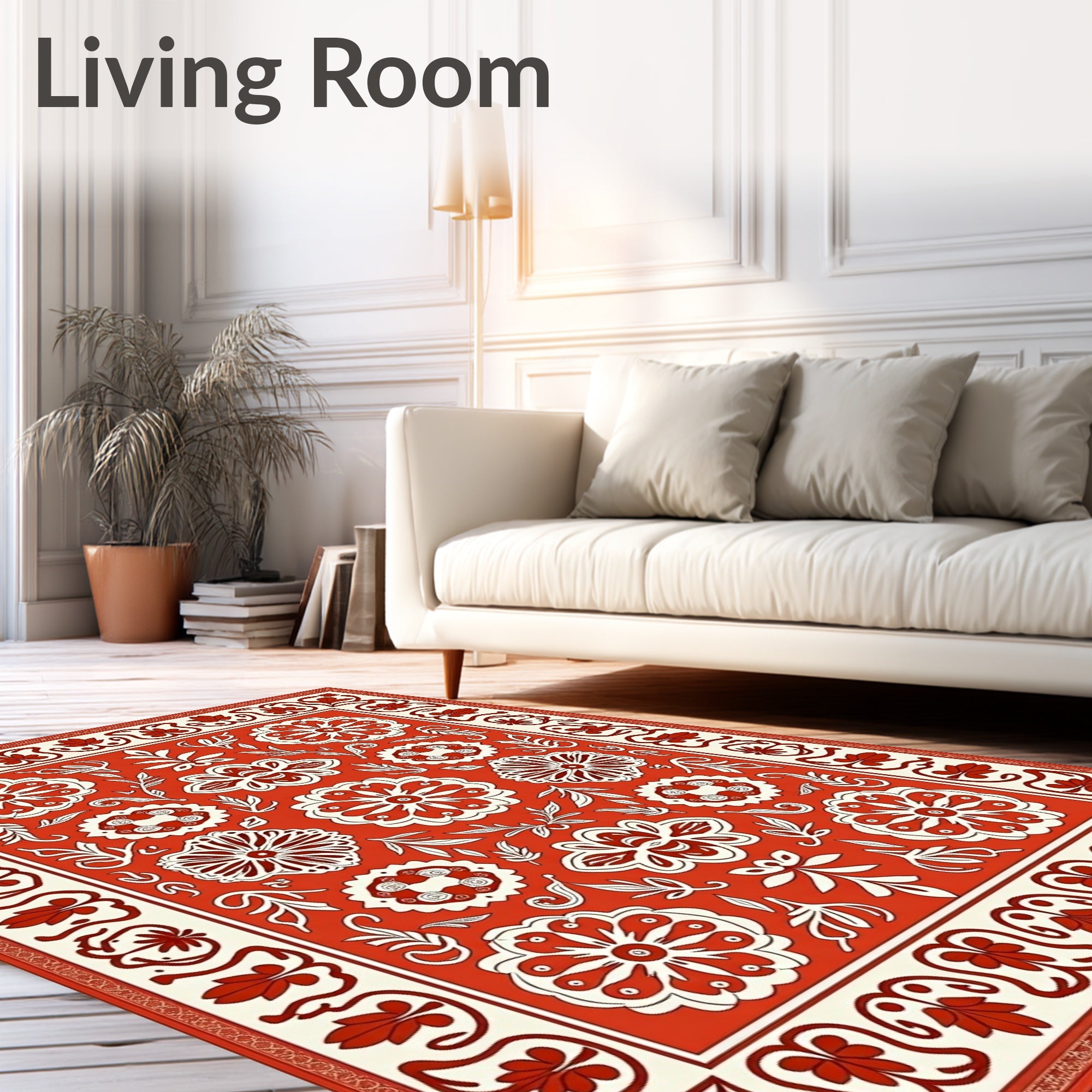 Ultra Soft Area Rug, Non Slip, Stain Resistant, Washable Area Rugs for Living Room, Bedroom, Autumn Petal Mosaic with Ornate Leaf Filigree(Red) Overview: