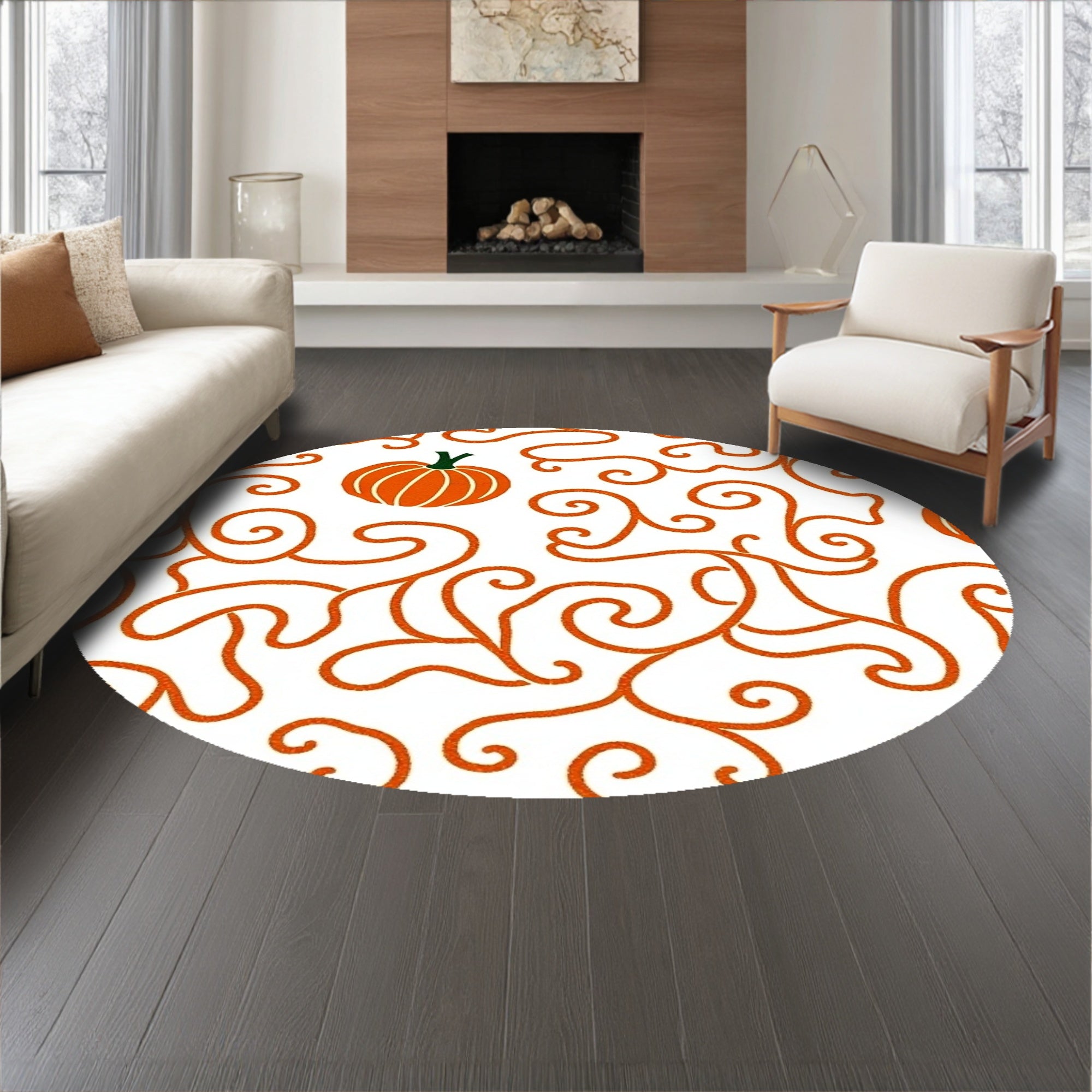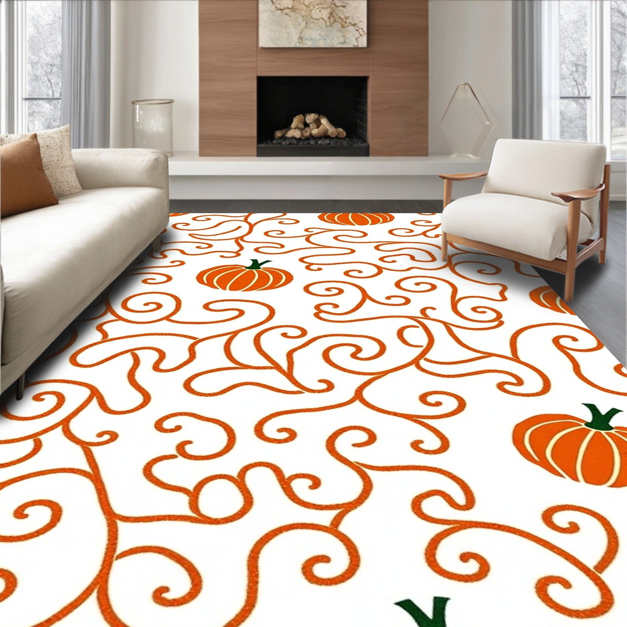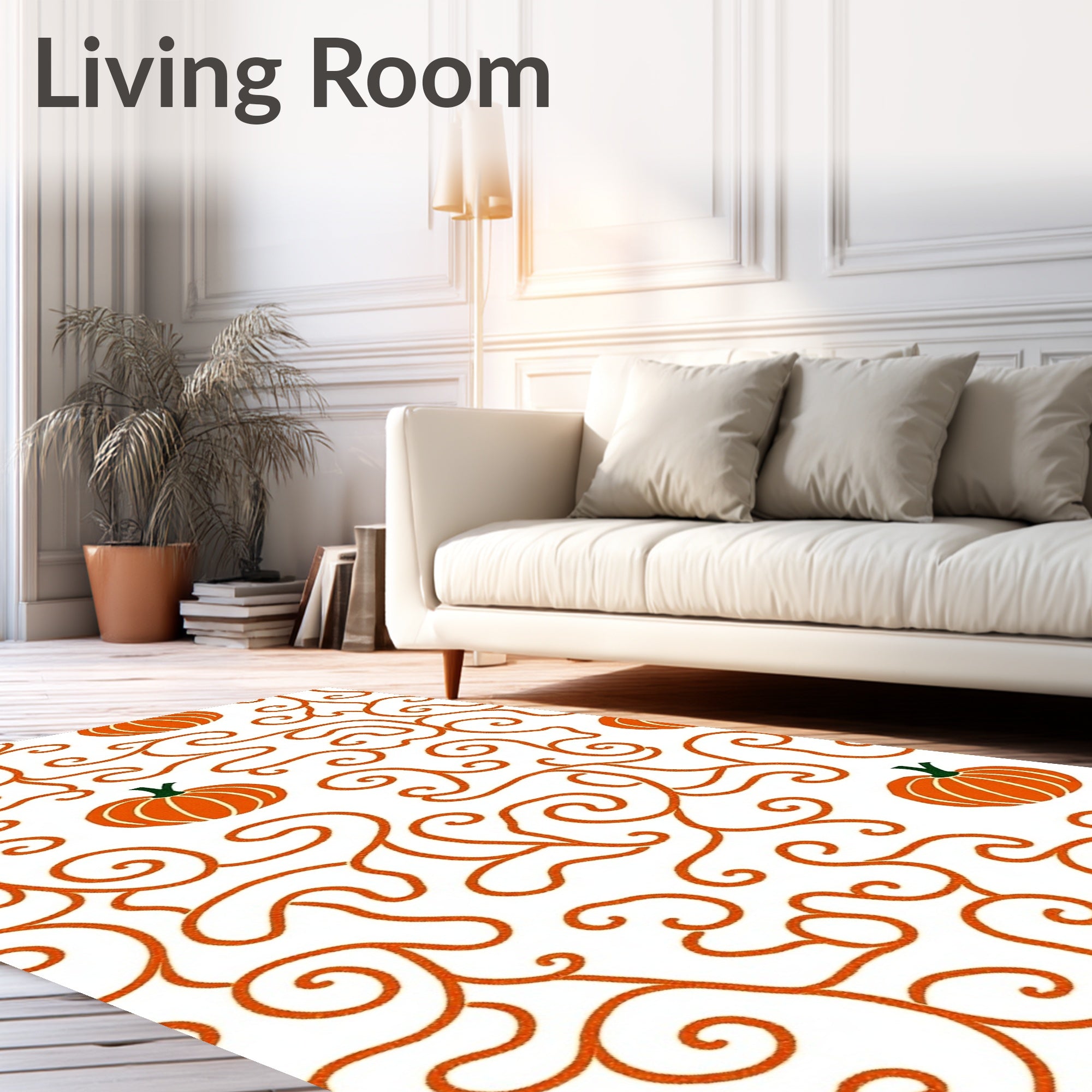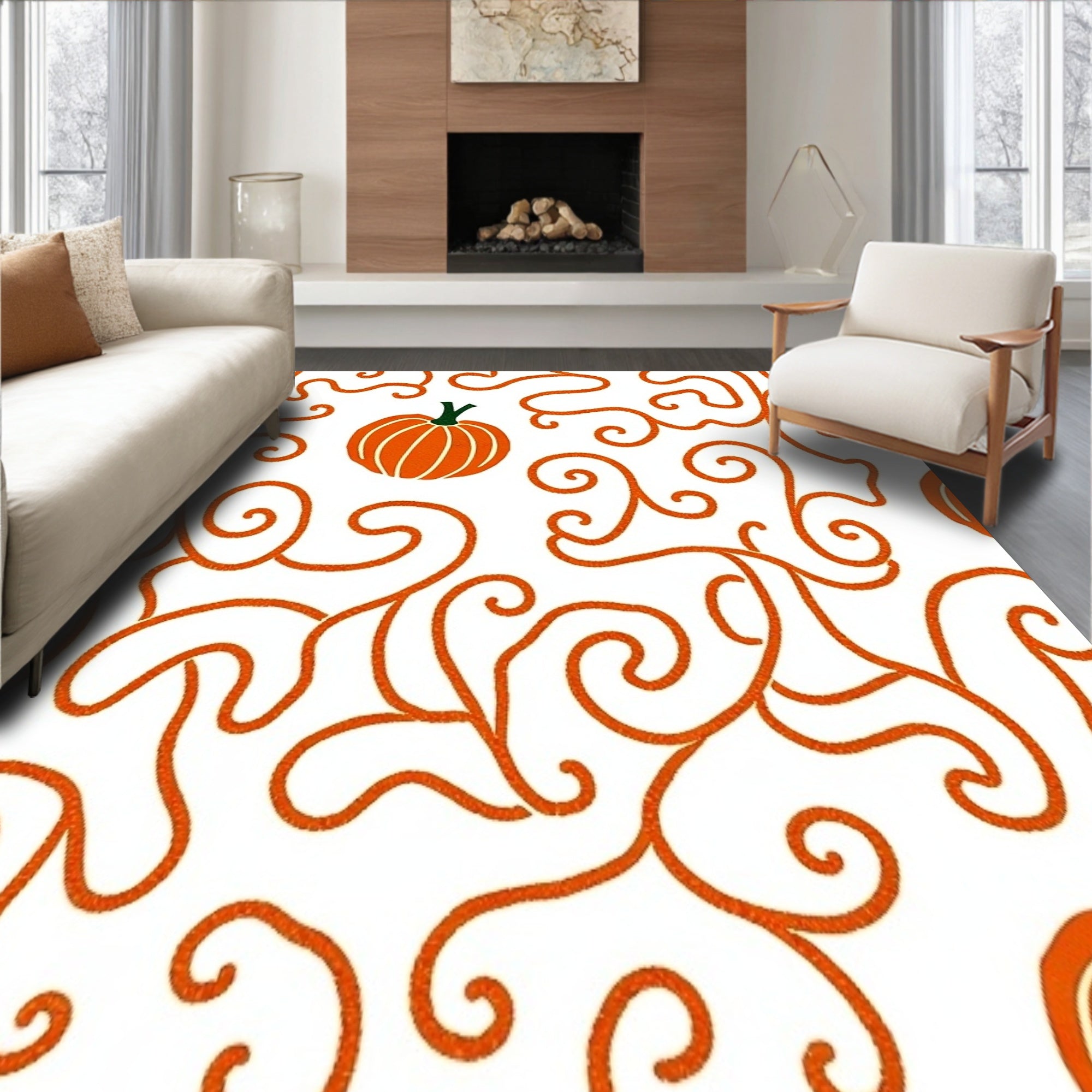 Ultra Soft Area Rug, Non Slip, Stain Resistant, Washable Area Rugs for Living Room, Bedroom, Autumn Pumpkin Vine Scroll Motif with Traditional Harvest Theme(Orange) Overview: