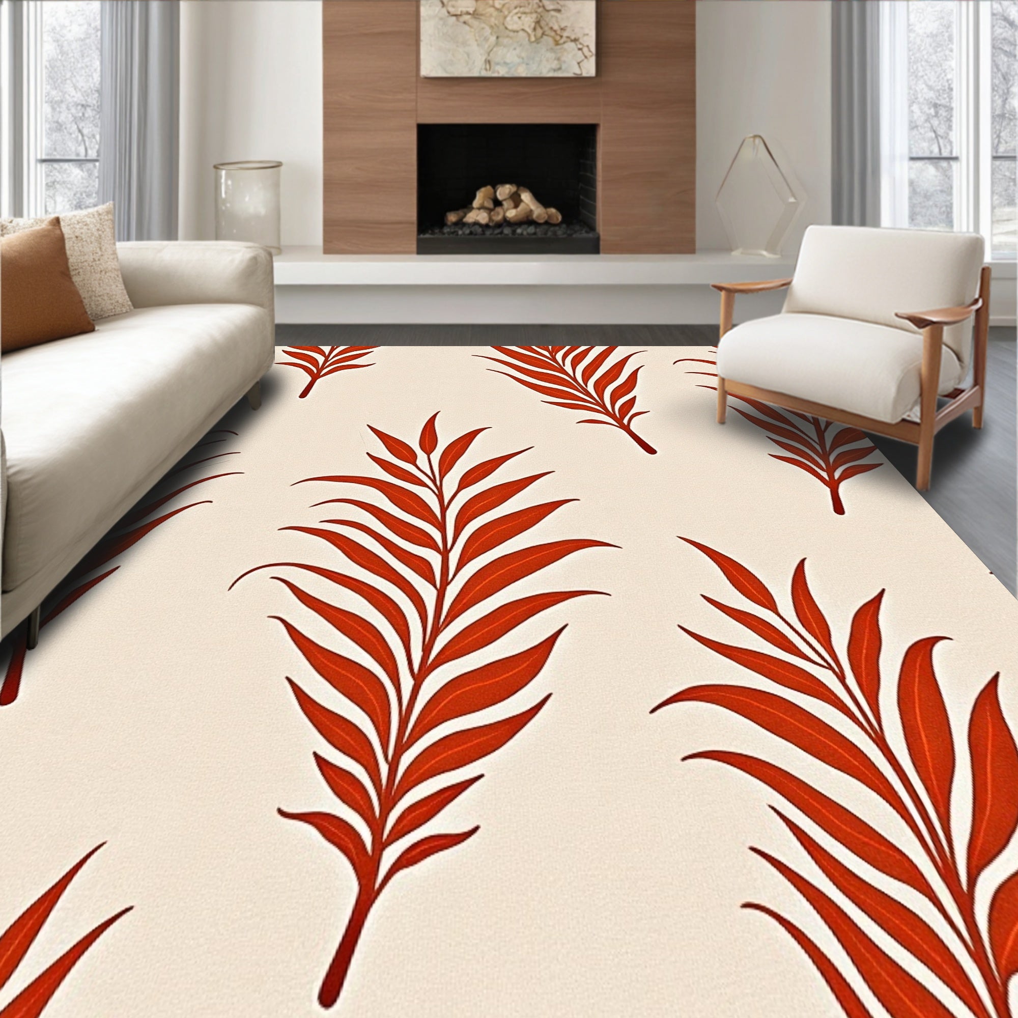 Ultra Soft Area Rug, Non Slip, Stain Resistant, Washable Area Rugs for Living Room, Bedroom, Autumn Splendor Interwoven Leaf Cascade(Beige) Overview: