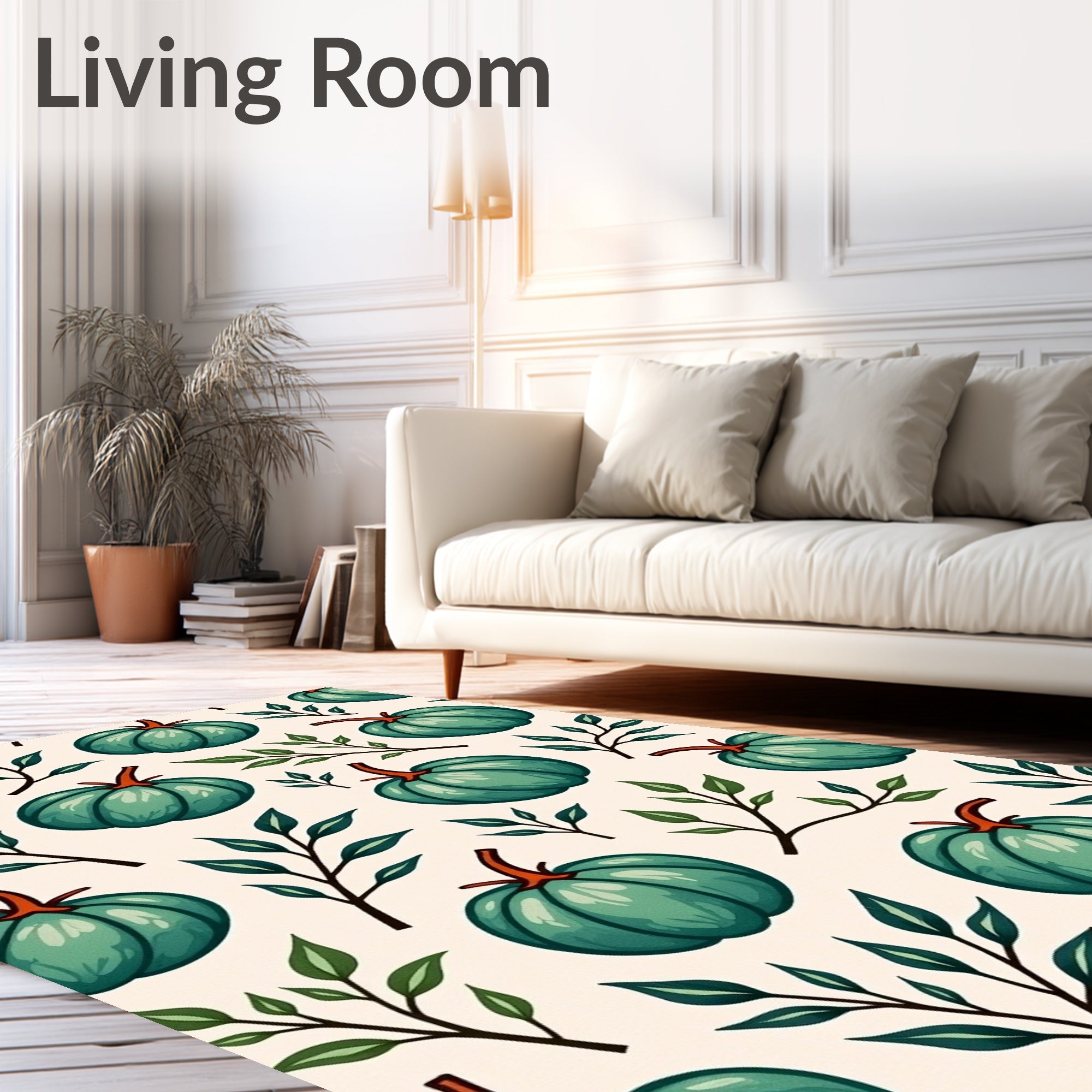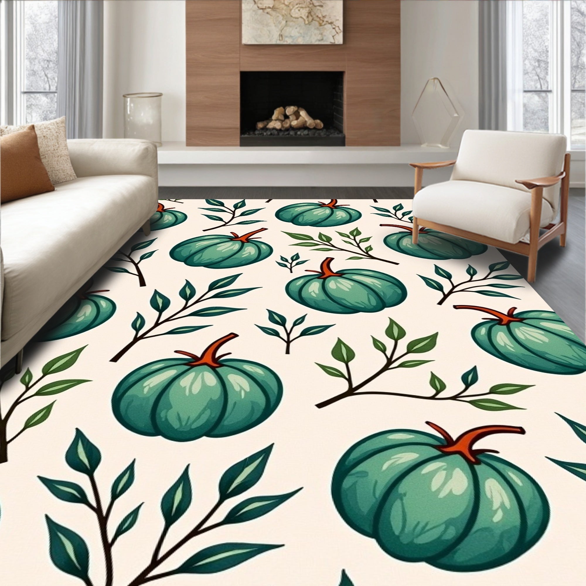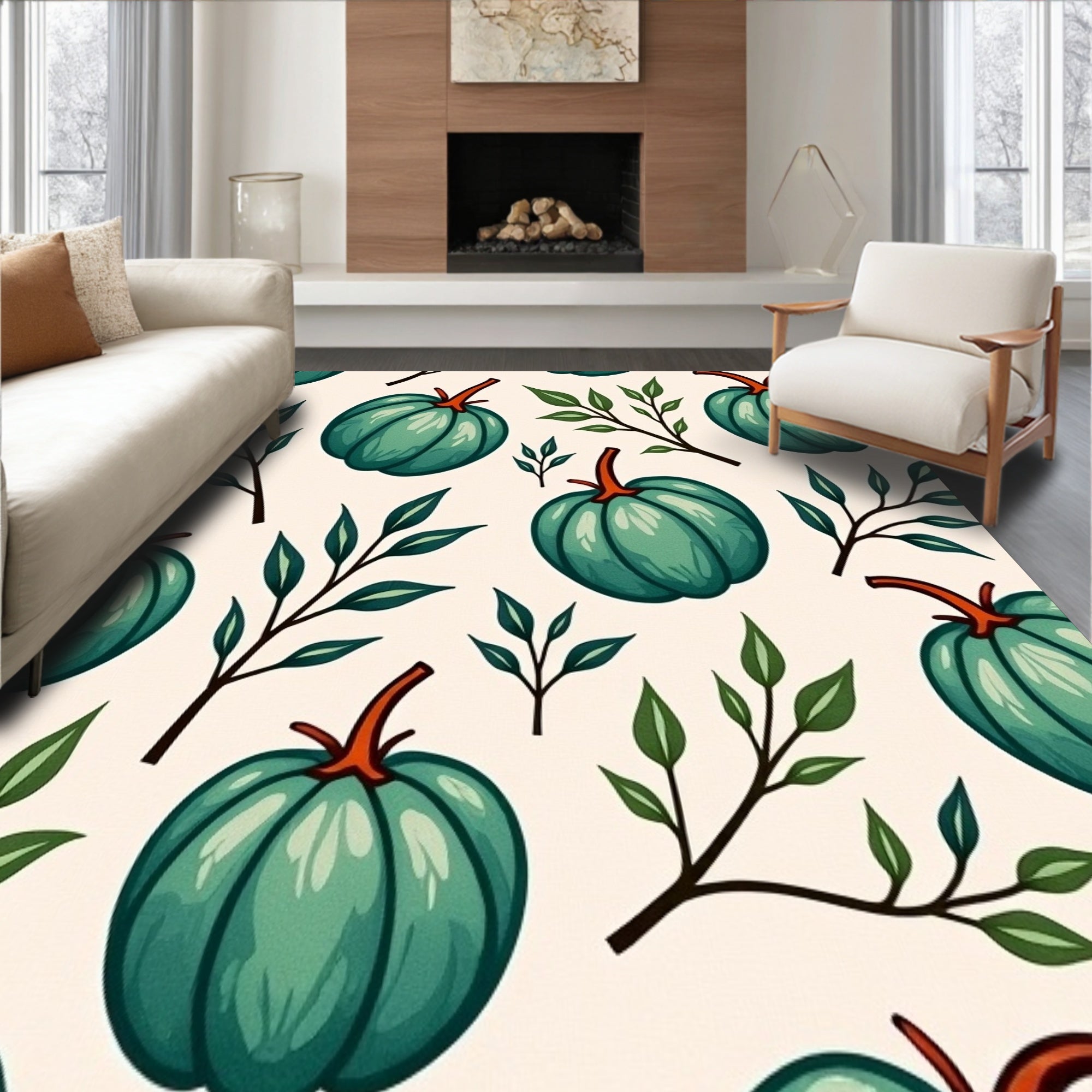 Ultra Soft Area Rug, Non Slip, Stain Resistant, Washable Area Rugs for Living Room, Bedroom, Autumn Squash Garden with Leafy Branch Motifs Anti Slip Bath(Ivory) Overview: