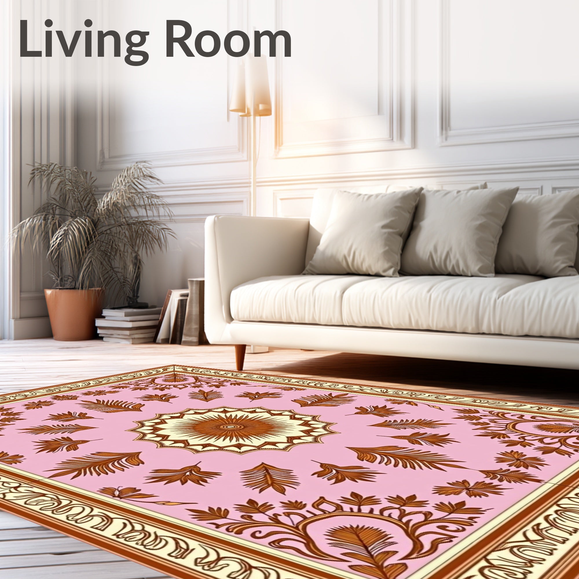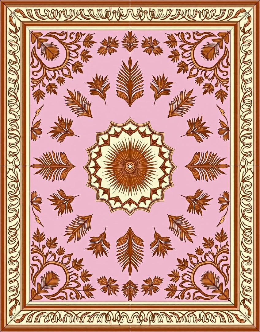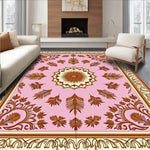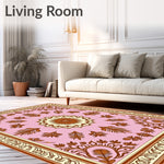 Ultra Soft Area Rug, Non Slip, Stain Resistant, Washable Area Rugs for Living Room, Bedroom, Autumn Wheat Sheaf Damask with Harvest Festival Ornamental Print(Pink) Overview: