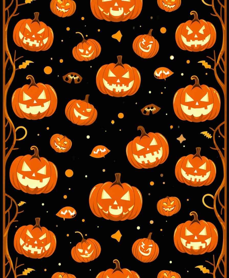 Autumnal Halloween with Pumpkin Faces and Creepy Silhouettes(Orange)