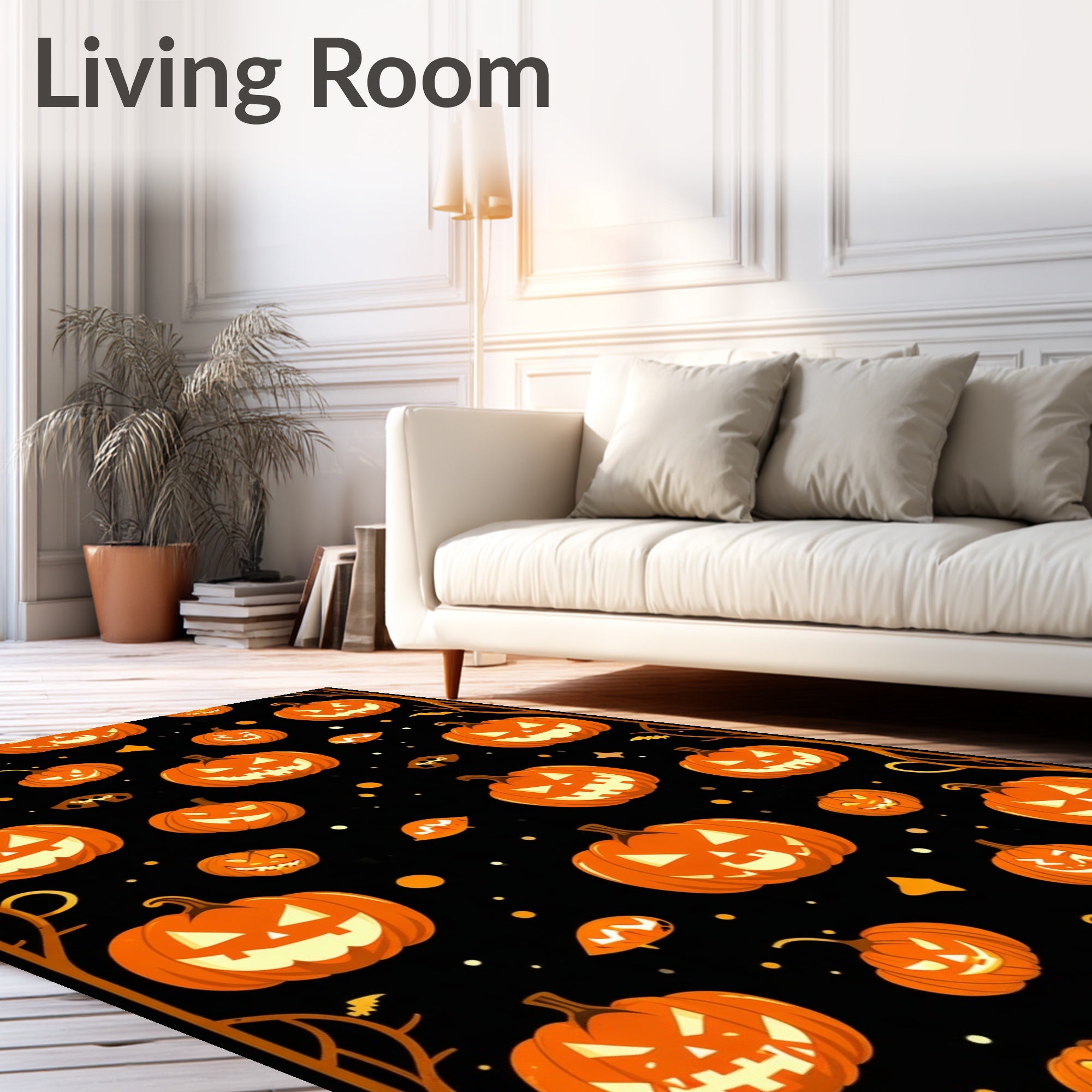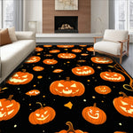 Flatwoven High Traffic Area Rug, Autumnal Halloween with Pumpkin Faces and Creepy Silhouettes, Non Slip, Stain Resistant, Washable Area Rugs for Living Room, Bedroom (Orange) Overview: