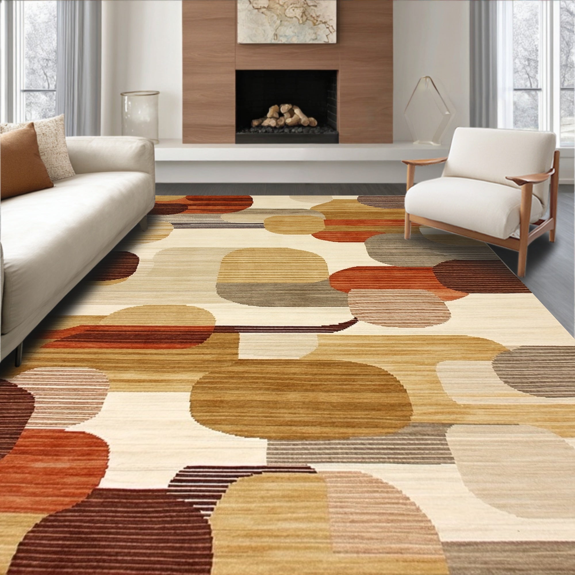 Ultra Soft Area Rug, Non Slip, Stain Resistant, Washable Area Rugs for Living Room, Bedroom, Autumnal Harvest Collection Area Rich Earth Tones Beige Brown(Beige) Overview: