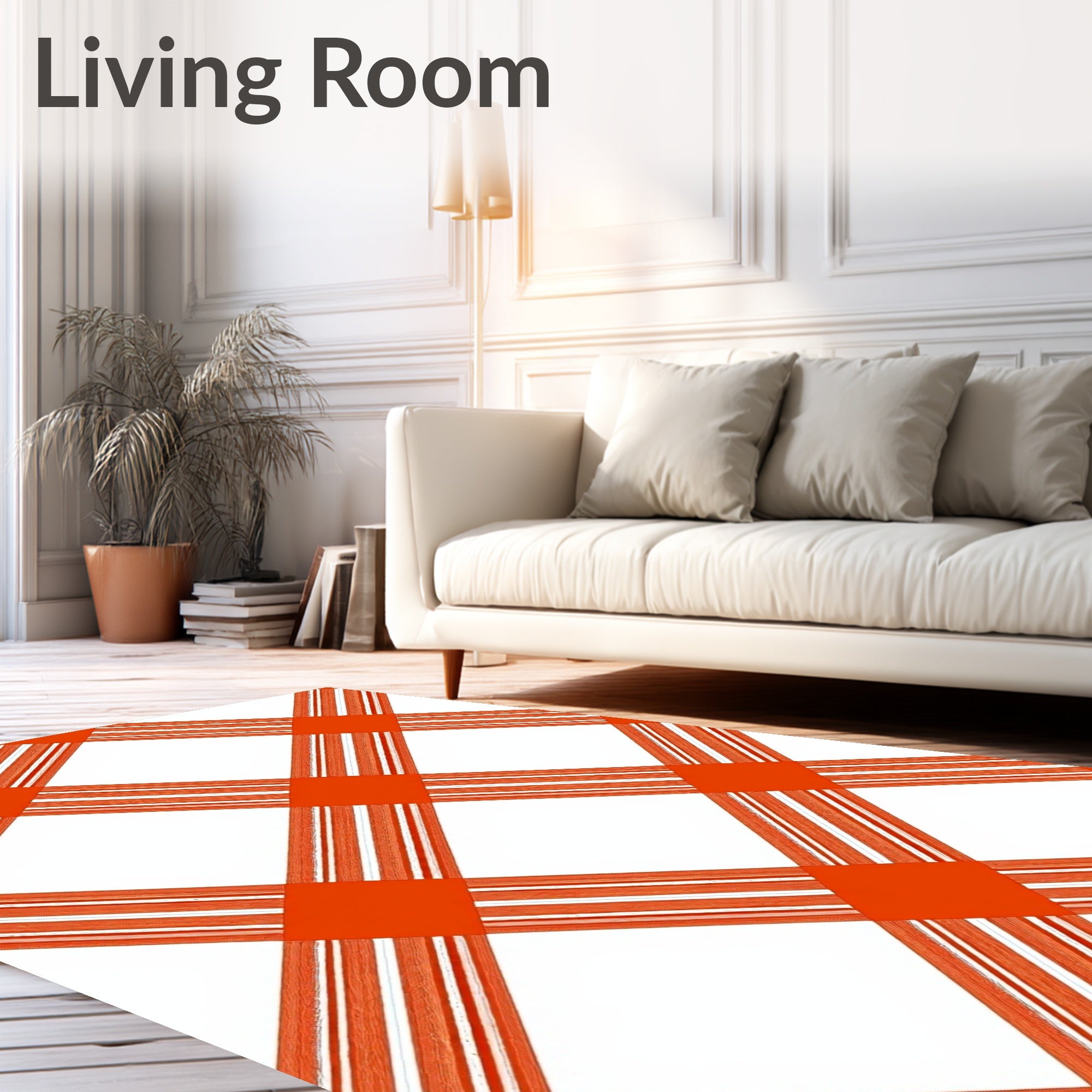 Ultra Soft Area Rug, Non Slip, Stain Resistant, Washable Area Rugs for Living Room, Bedroom, Autumnal Tartan Showcasing Interlocking Bold Stripes and Seasonal Plaids(Orange) Overview:
