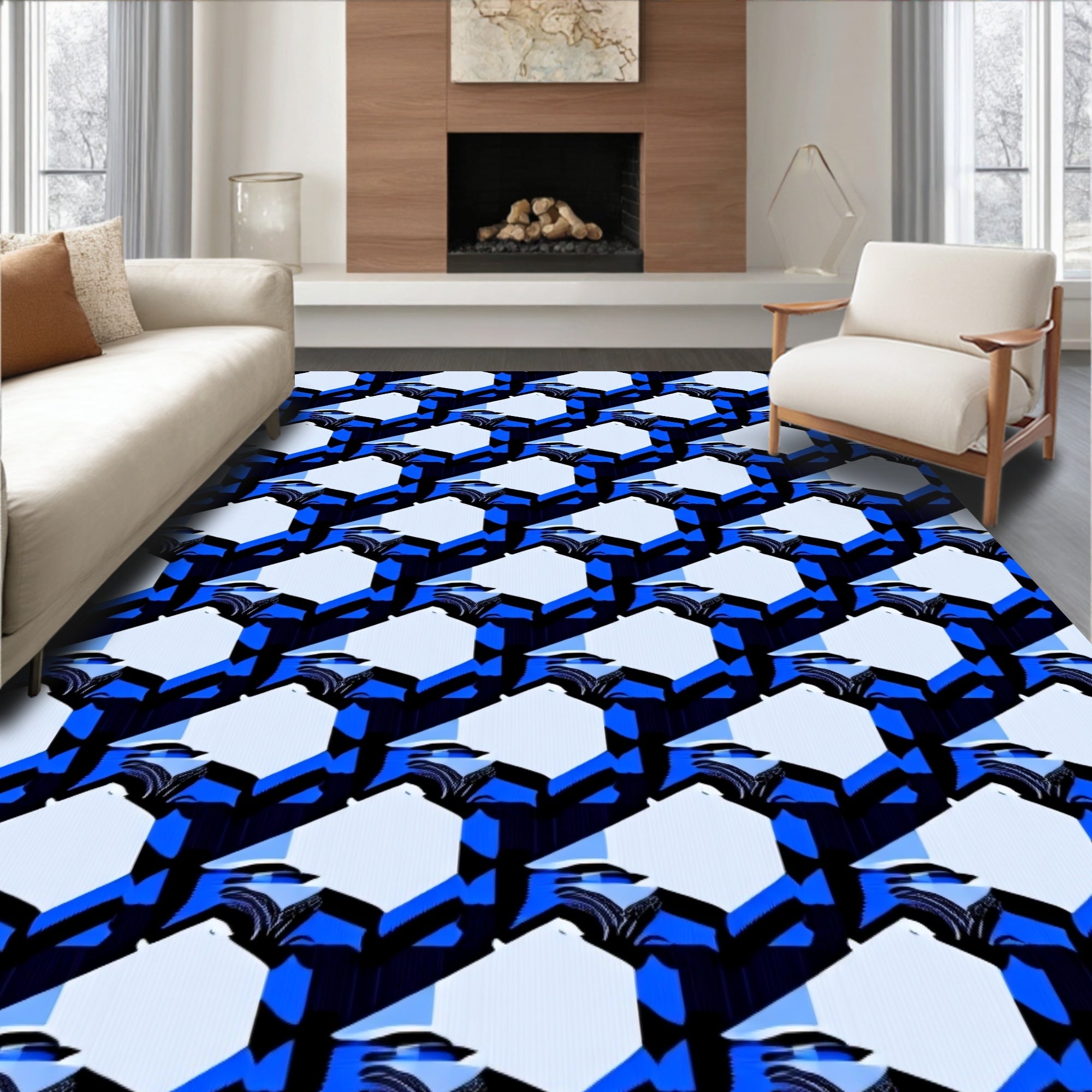 Ultra Soft Area Rug, Non Slip, Stain Resistant, Washable Area Rugs for Living Room, Bedroom, Avant Garde Honeycomb Hexagonal Artistic Sophisticated Unique(Blue) Overview: