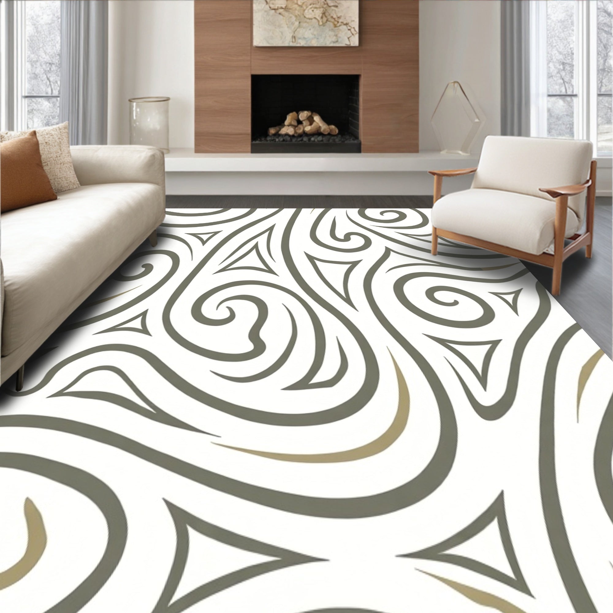 Ultra Soft Area Rug, Non Slip, Stain Resistant, Washable Area Rugs for Living Room, Bedroom, Avant garde Swirl Labyrinth Crafted Flooring(White) Overview: