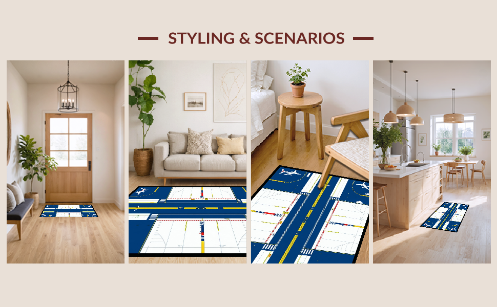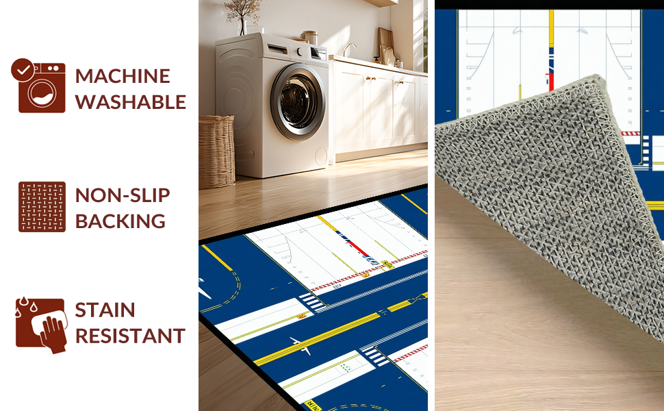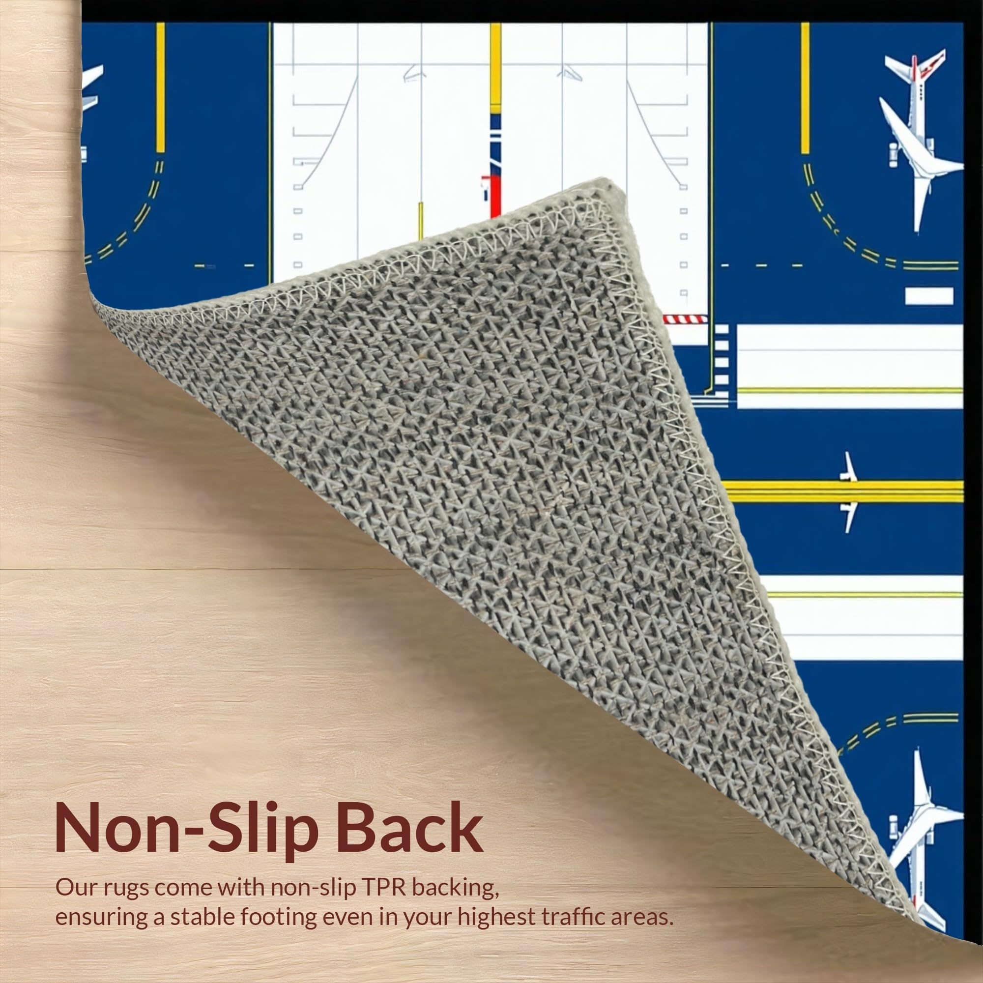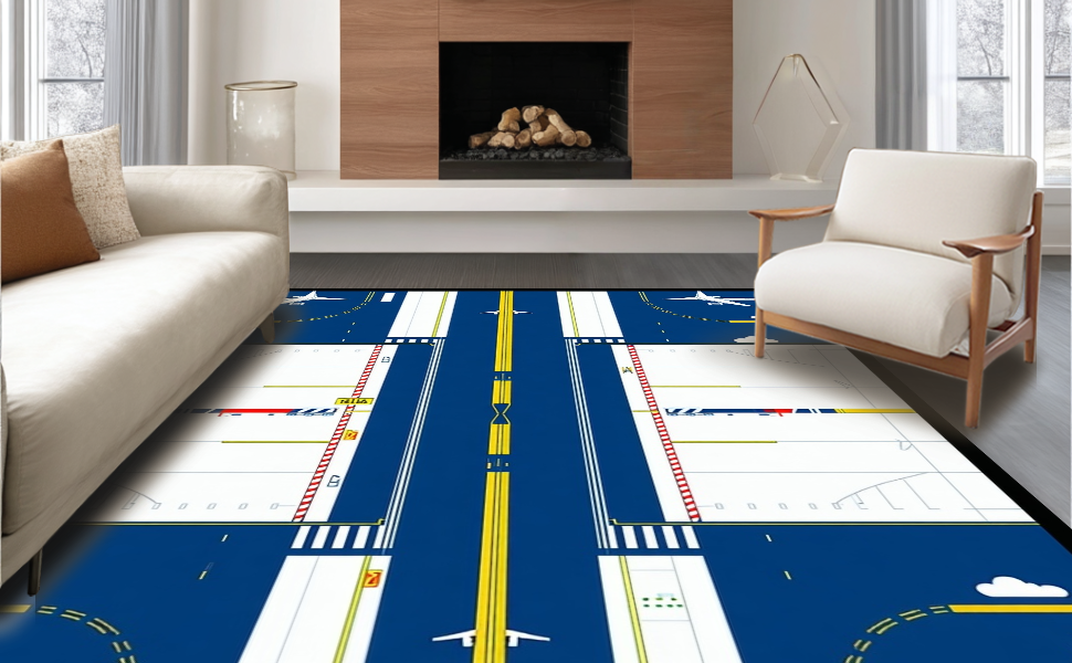 Ultra Soft Area Rug, Non Slip, Stain Resistant, Washable Area Rugs for Living Room, Bedroom, Aviation Inspired Playful Landscape(Blue) Overview: