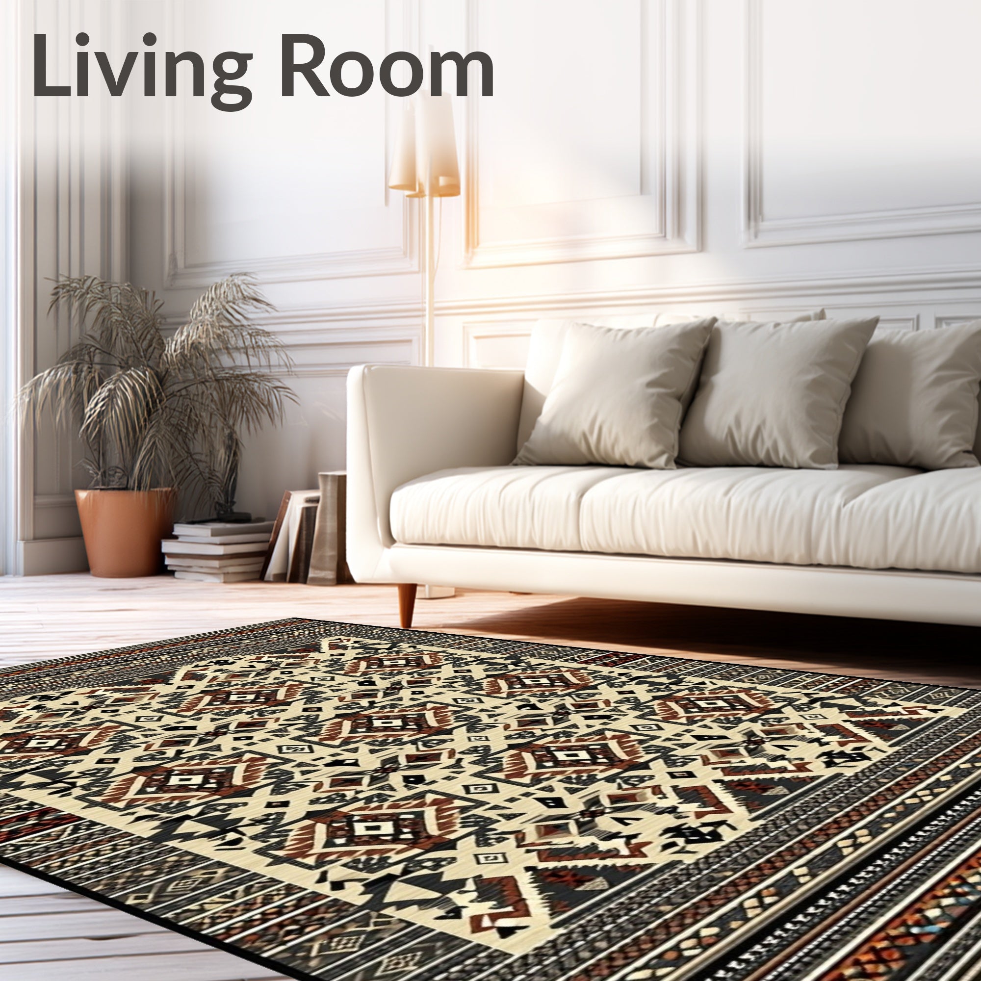 Ultra Soft Area Rug, Non Slip, Stain Resistant, Washable Area Rugs for Living Room, Bedroom, Aztec Inspired Area Abstract Tribal for Hallways(Beige) Overview:
