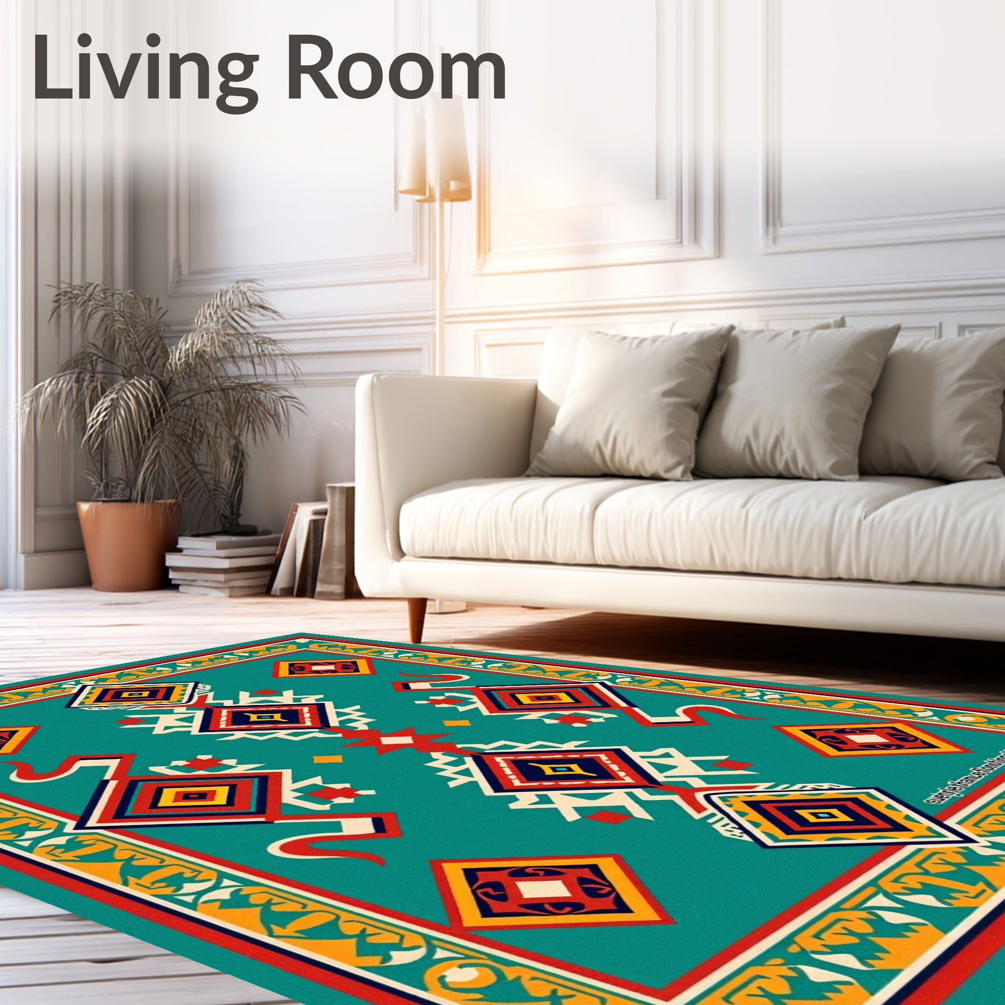 Ultra Soft Area Rug, Non Slip, Stain Resistant, Washable Area Rugs for Living Room, Bedroom, Aztec Southwestern Patterned(Turquoise) Overview: