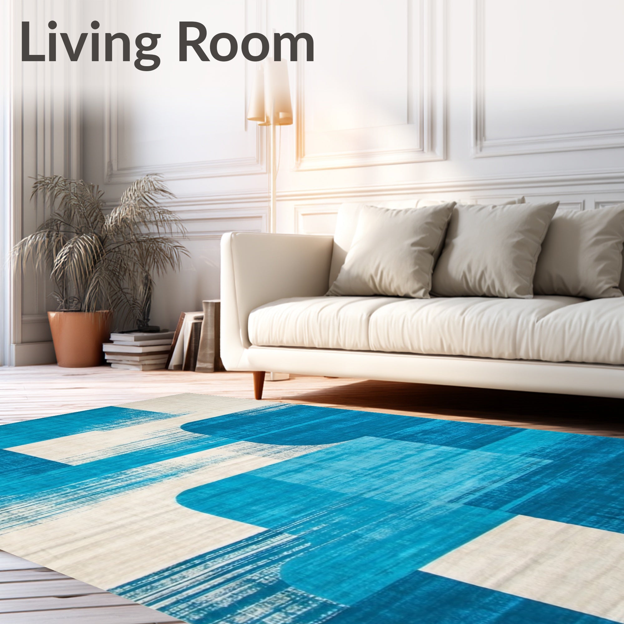 Ultra Soft Area Rug, Non Slip, Stain Resistant, Washable Area Rugs for Living Room, Bedroom, Azure Dreams Modern Boho With Innovative Anti Bunching Technology(Blue) Overview: