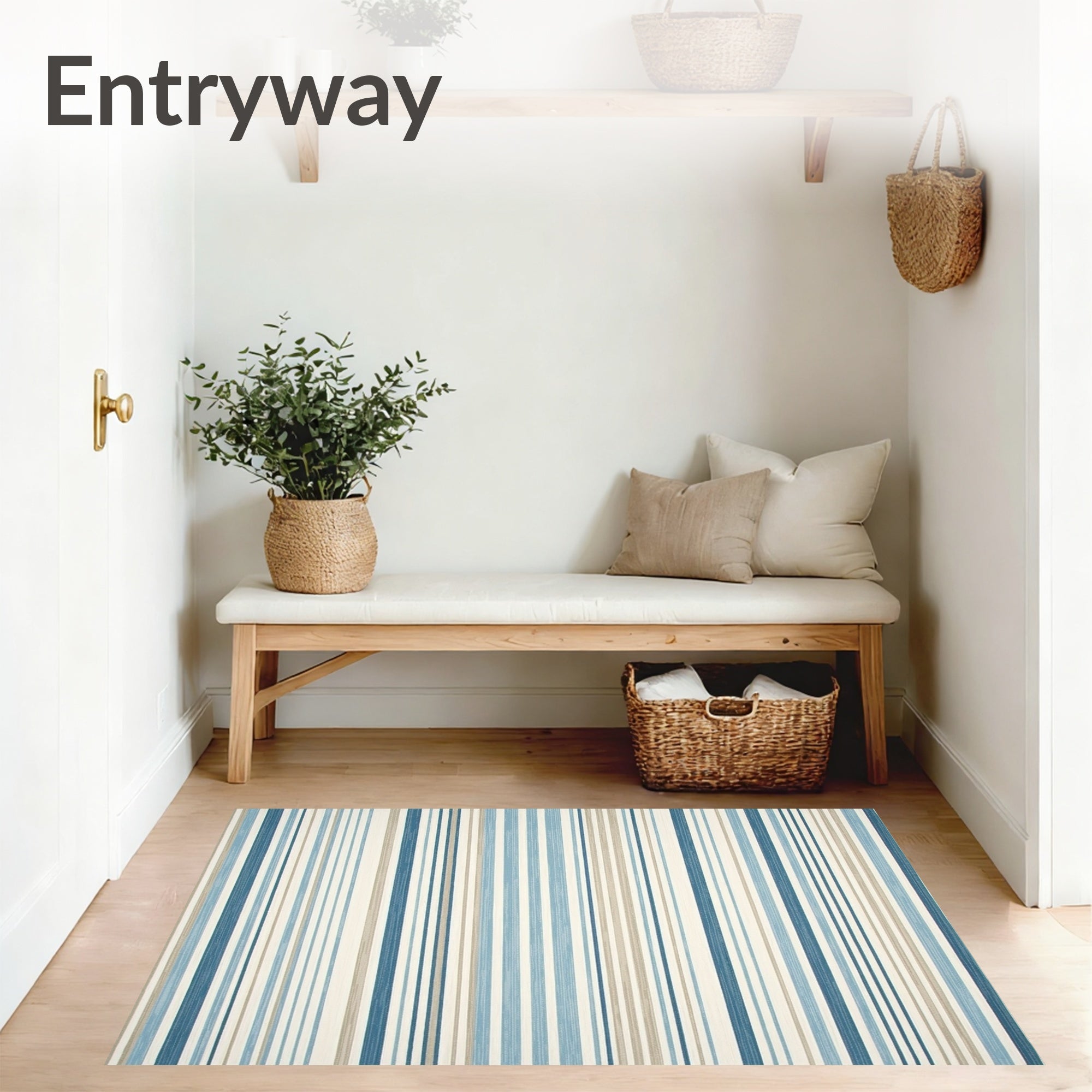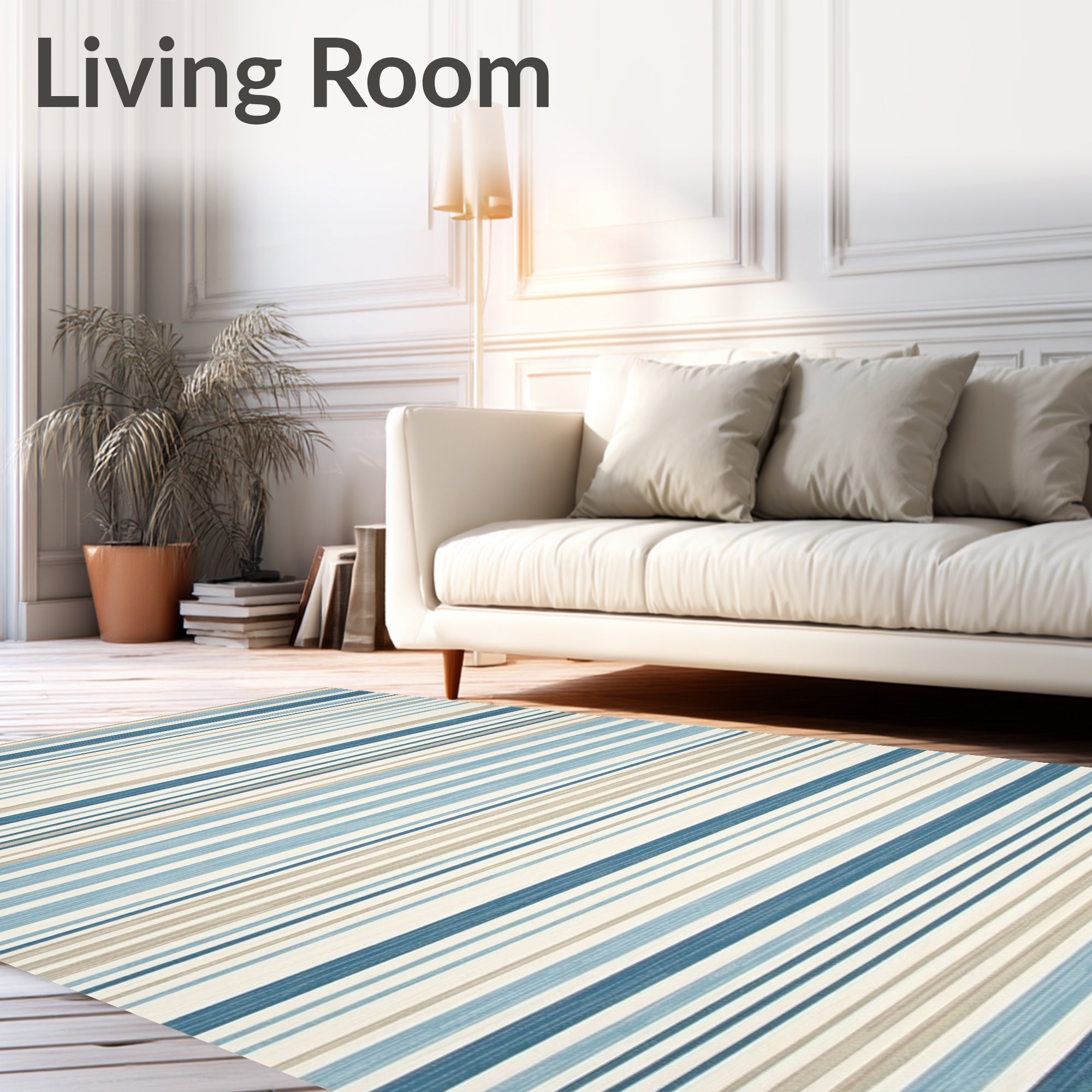 Ultra Soft Area Rug, Non Slip, Stain Resistant, Washable Area Rugs for Living Room, Bedroom, Azure Horizon Collection Striped Dune Area(Blue) Overview: