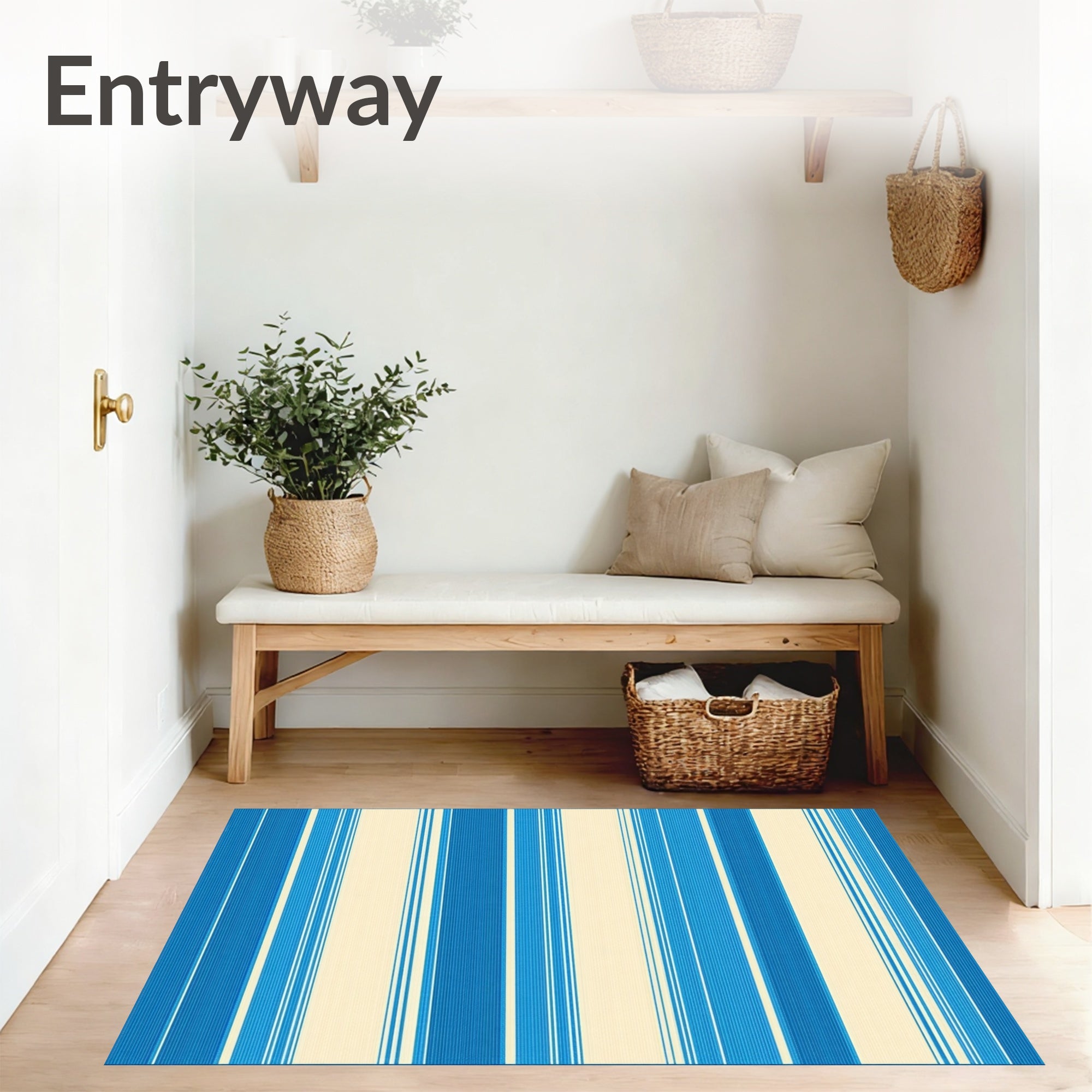 Flatwoven High Traffic Area Rug, Azure Horizon Striped Non Shedding Versatile Style, Non Slip, Stain Resistant, Washable Area Rugs for Living Room, Bedroom (Blue) Overview: