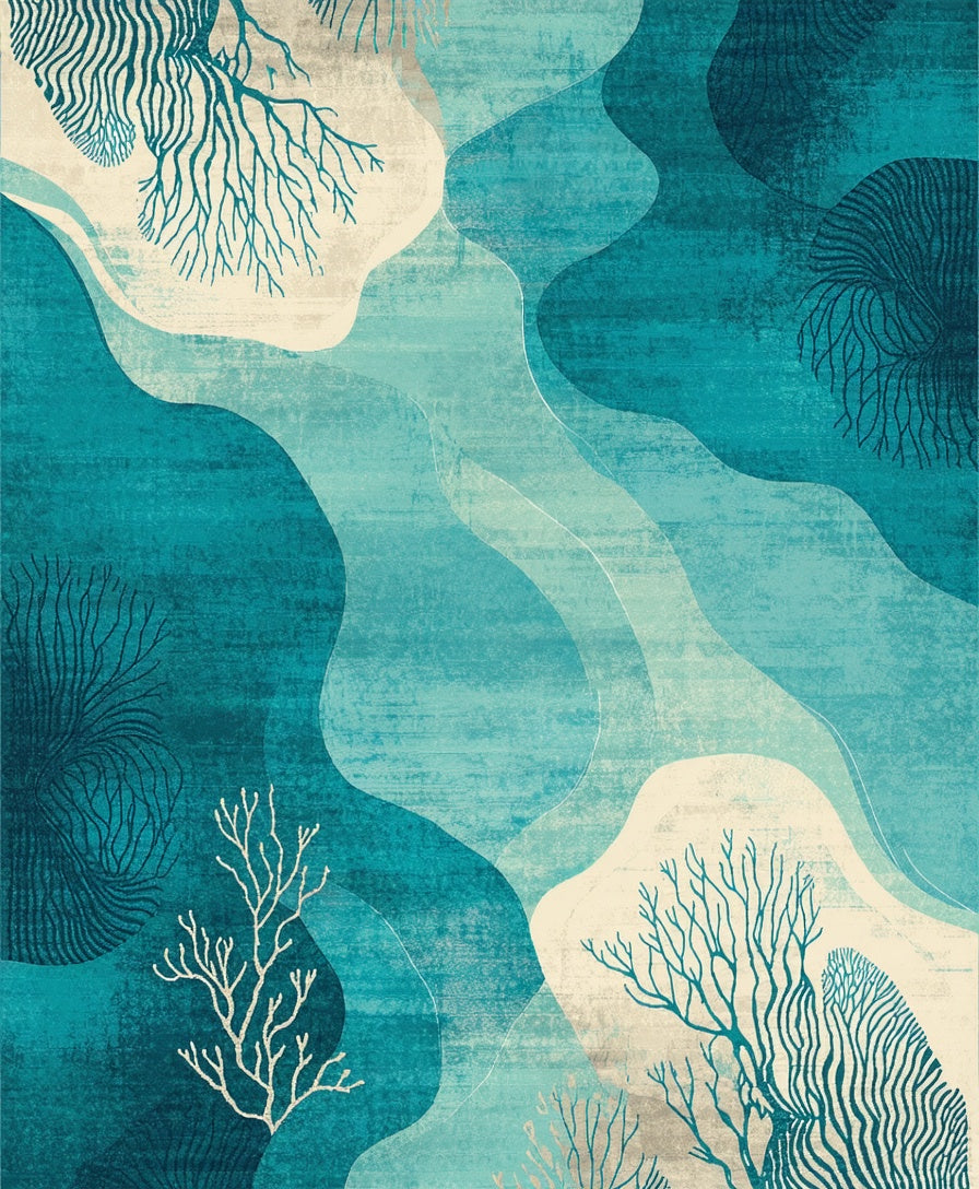 Azure Teal Beige Coastal Reef Ocean Indoor Reversible Area(Blue)