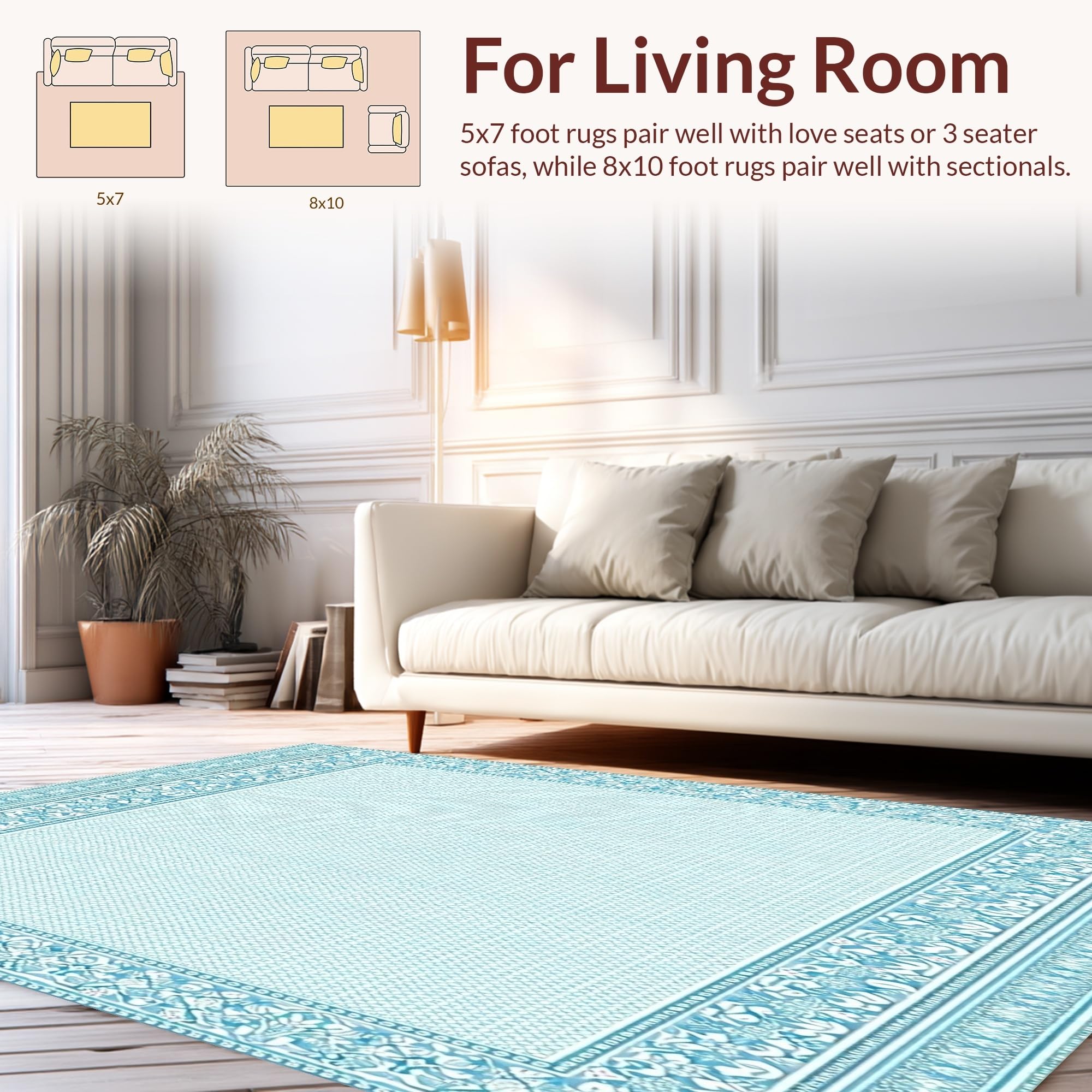 Ultra Soft Area Rug, Non Slip, Stain Resistant, Washable Area Rugs for Living Room, Bedroom, Baby Blue Light Dots(Blue) Overview: