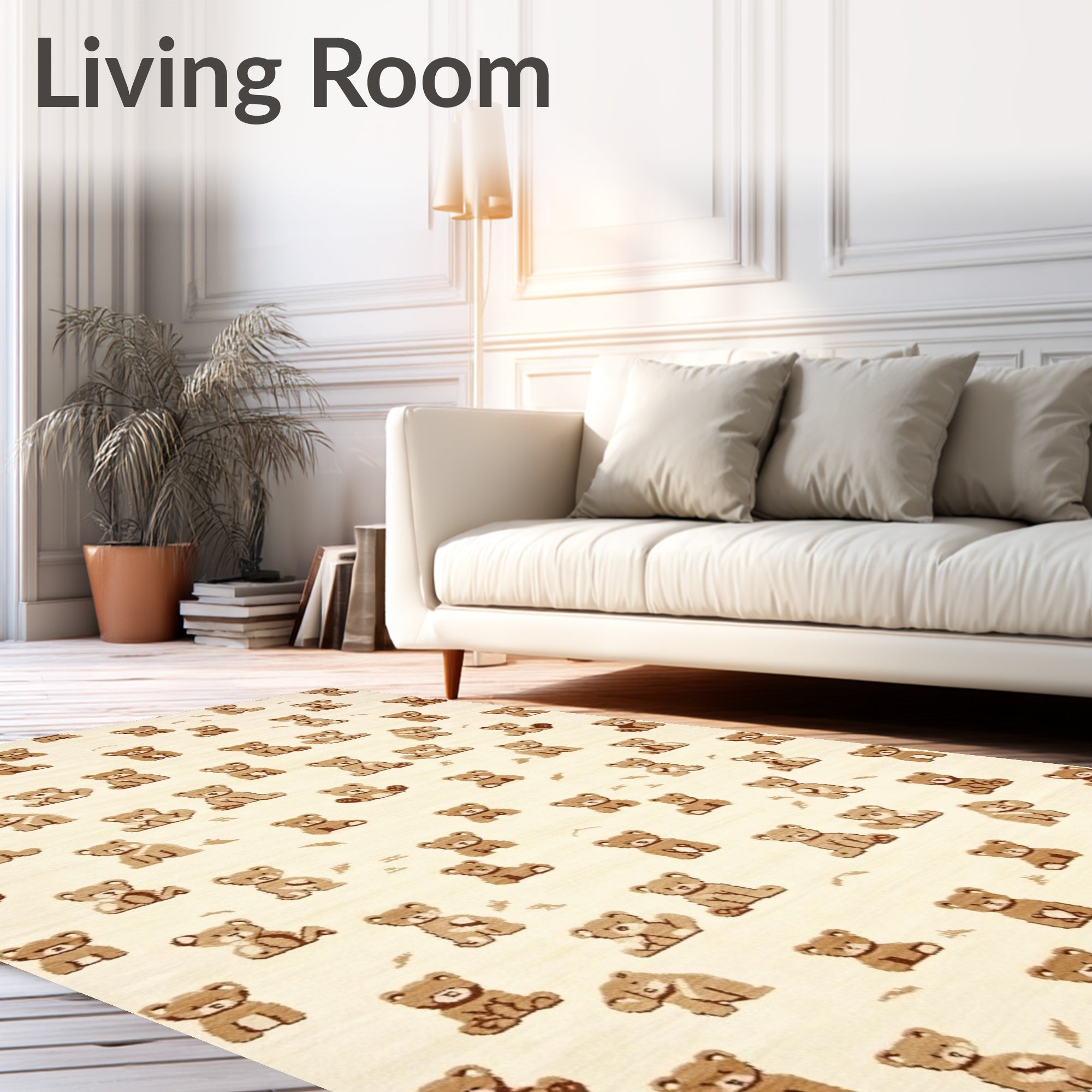 Ultra Soft Area Rug, Non Slip, Stain Resistant, Washable Area Rugs for Living Room, Bedroom, Baby Boy Nursery Cute Bear Print Design(Beige) Overview: