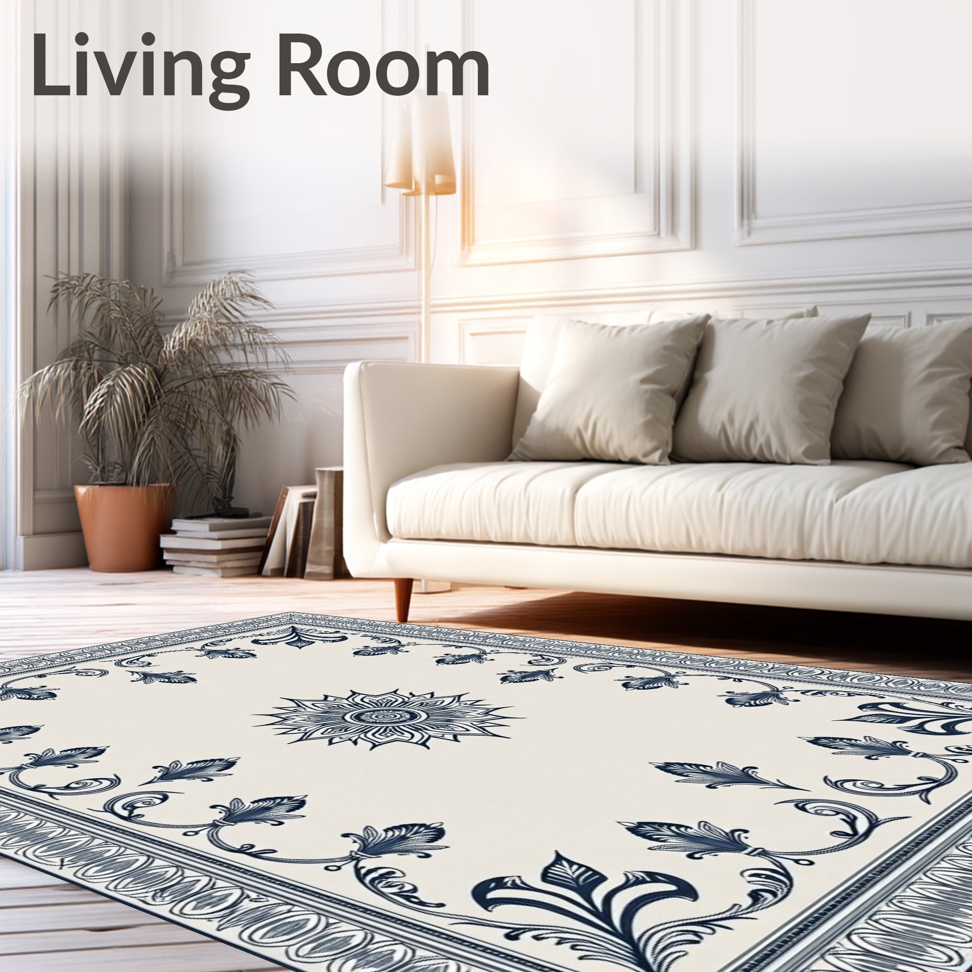 Ultra Soft Area Rug, Non Slip, Stain Resistant, Washable Area Rugs for Living Room, Bedroom, Baroque Arabesque with Ornamental Vinework and Petal Flourishes(Beige) Overview: