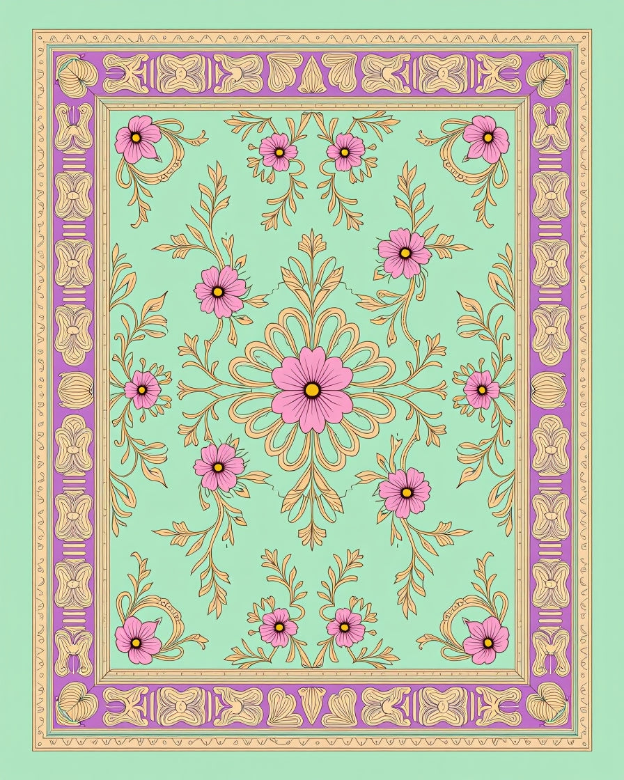 Ultra Soft Area Rug, Non Slip, Stain Resistant, Washable Area Rugs for Living Room, Bedroom, Baroque Garden Lattice Filigree Blossoms Timeless Heritage Design(Green) Overview: