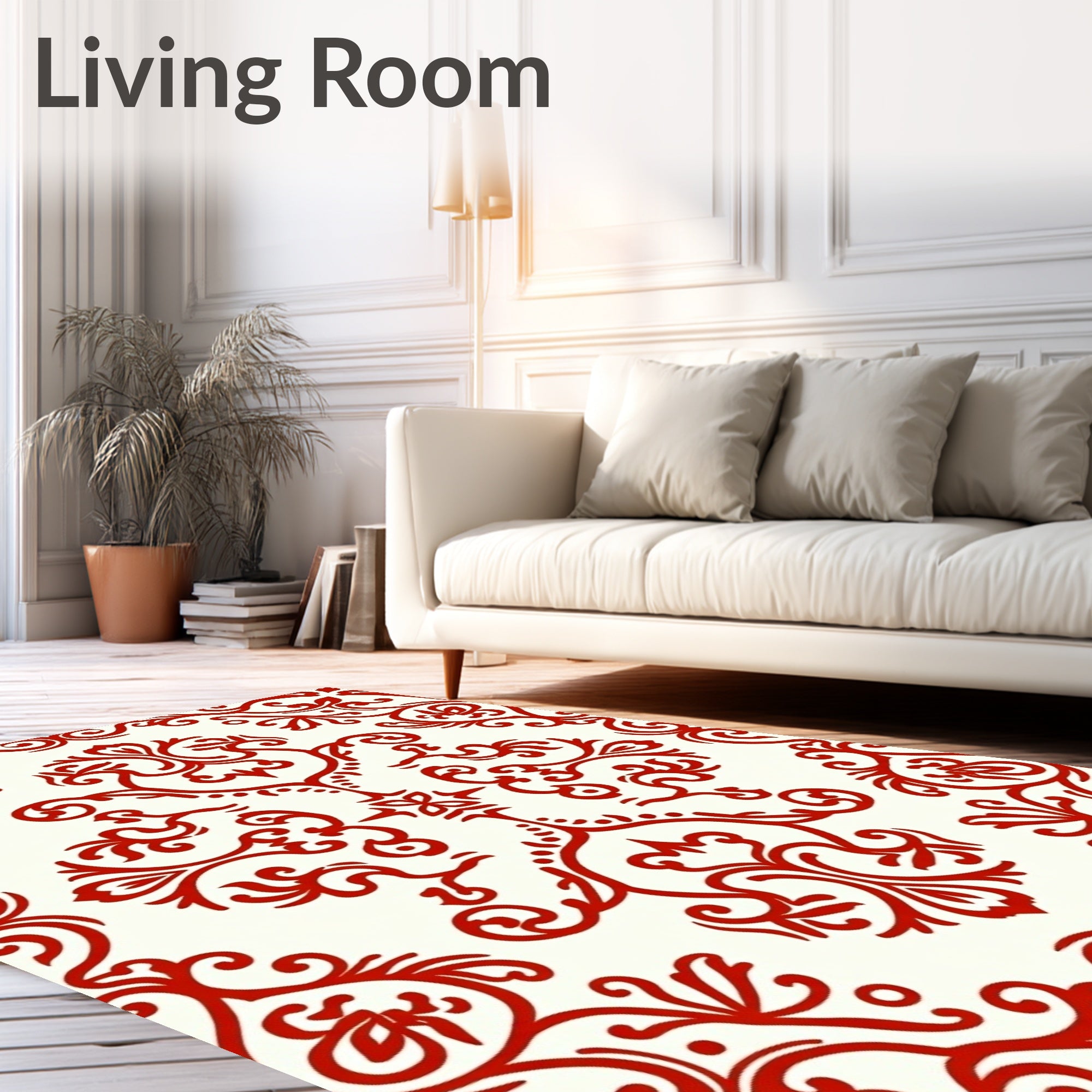 Ultra Soft Area Rug, Non Slip, Stain Resistant, Washable Area Rugs for Living Room, Bedroom, Baroque Scroll Trellis Composition(Red) Overview: