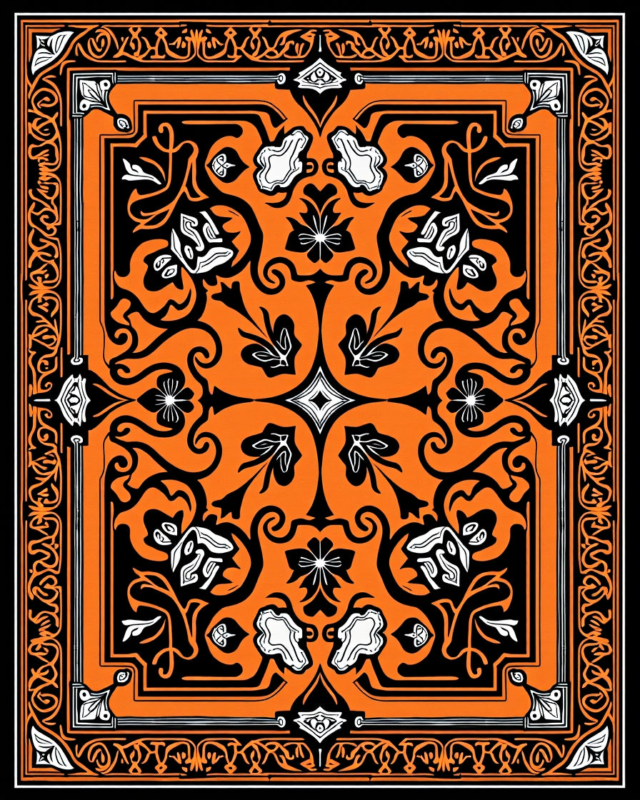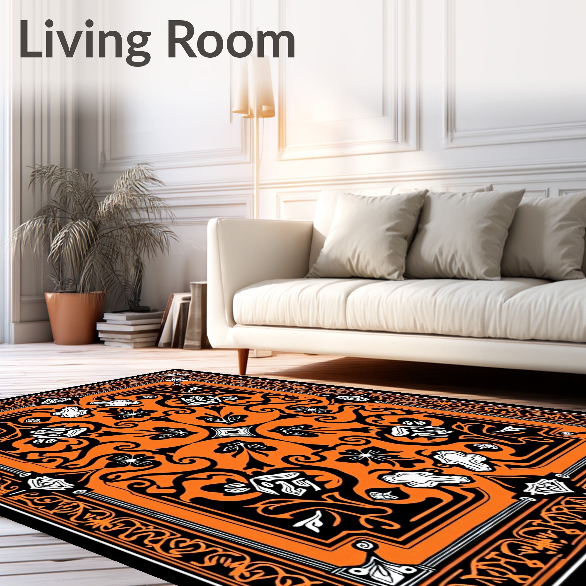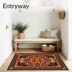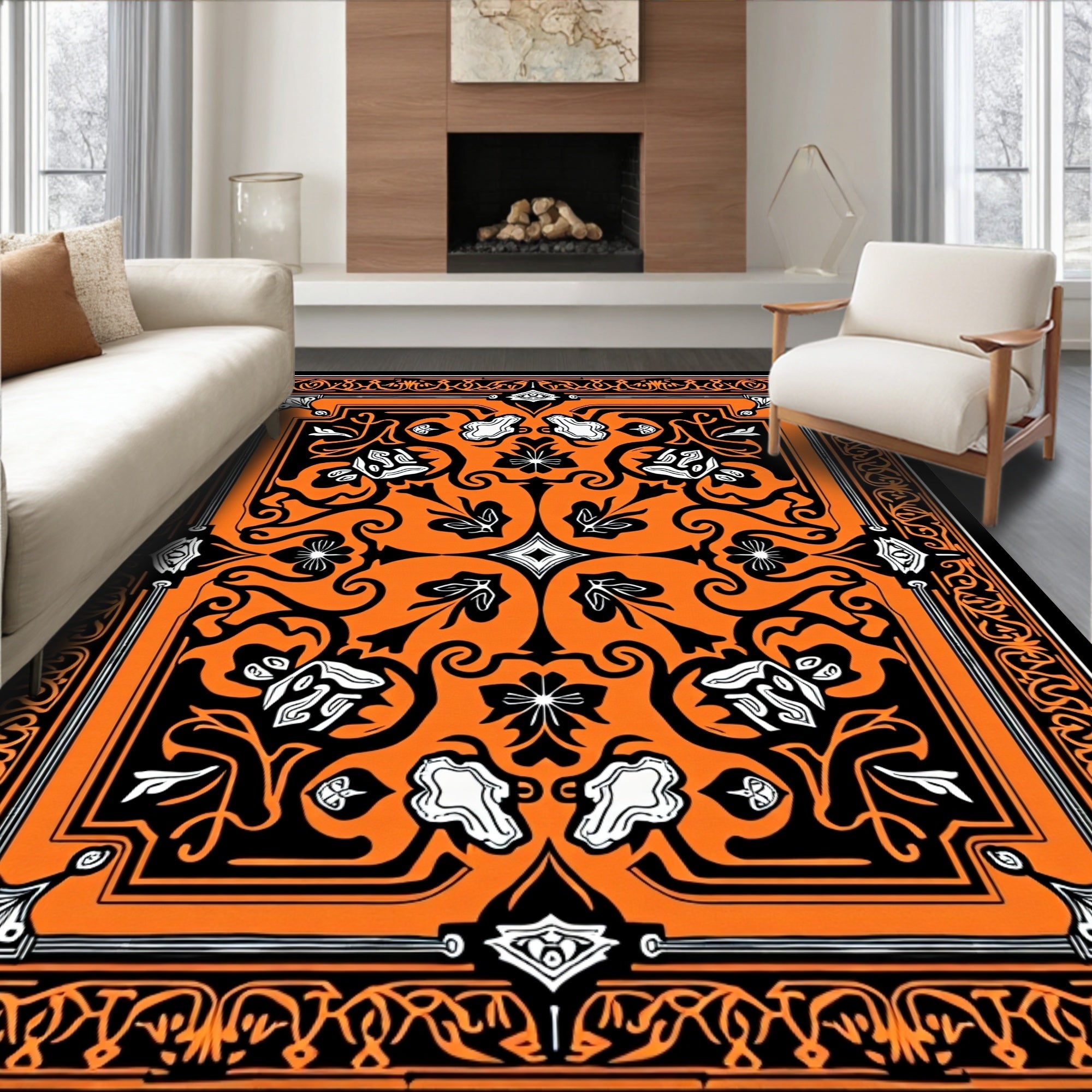 Ultra Soft Area Rug, Non Slip, Stain Resistant, Washable Area Rugs for Living Room, Bedroom, Baroque Skull Filigree Gothic Ornamental Horror Damask(Orange) Overview: