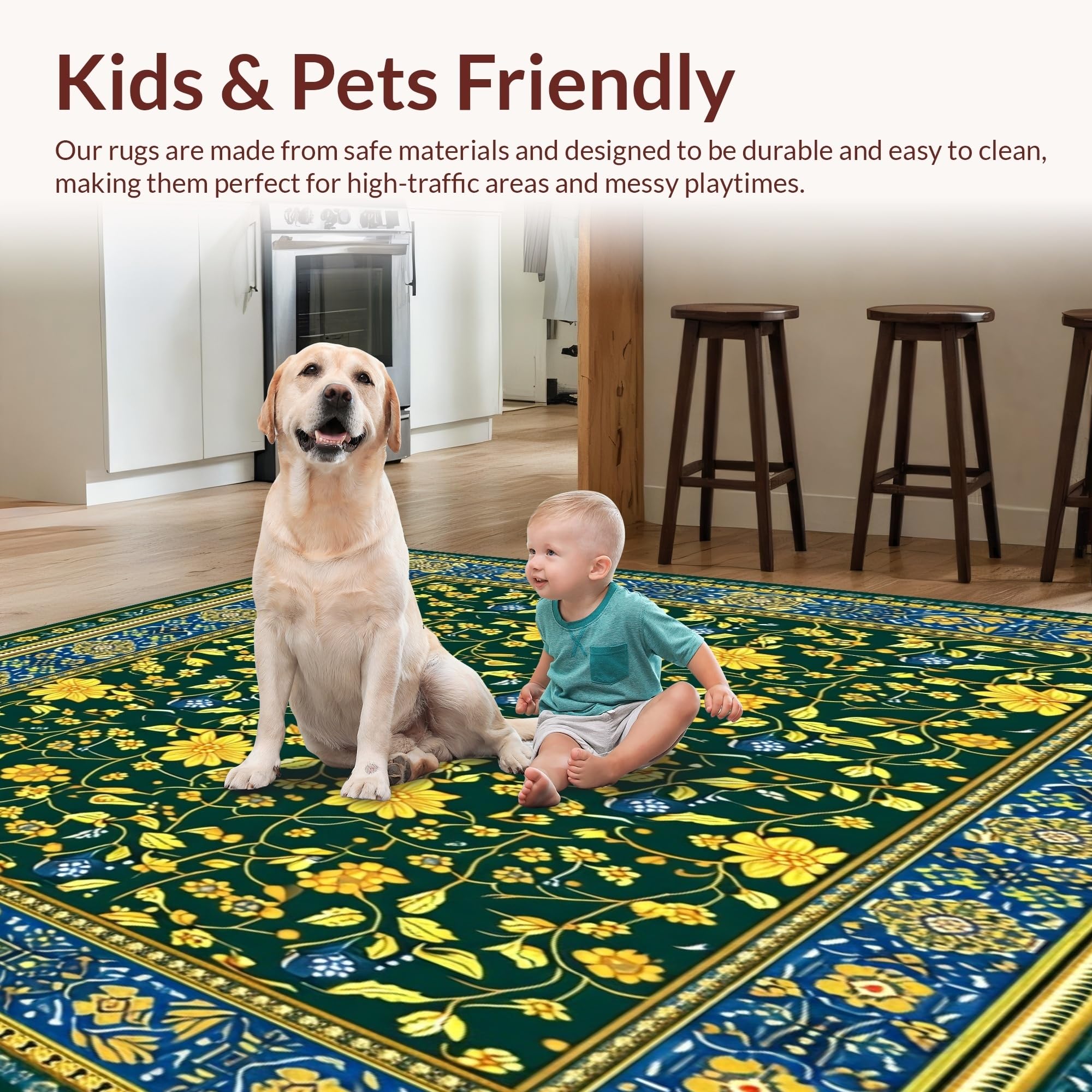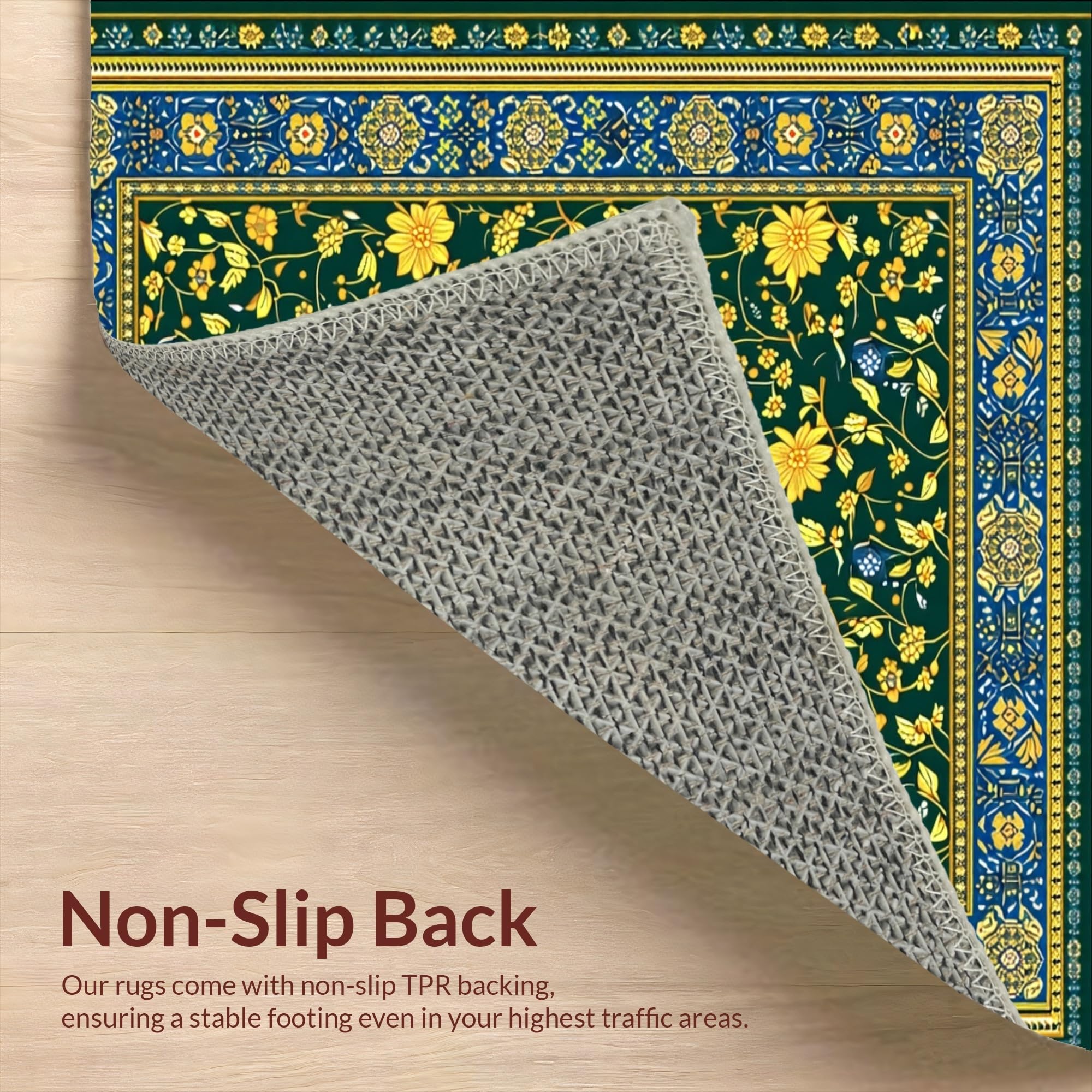 Ultra Soft Area Rug, Non Slip, Stain Resistant, Washable Area Rugs for Living Room, Bedroom, Bathroom Area with Floral Leaf Design(Green) Overview: