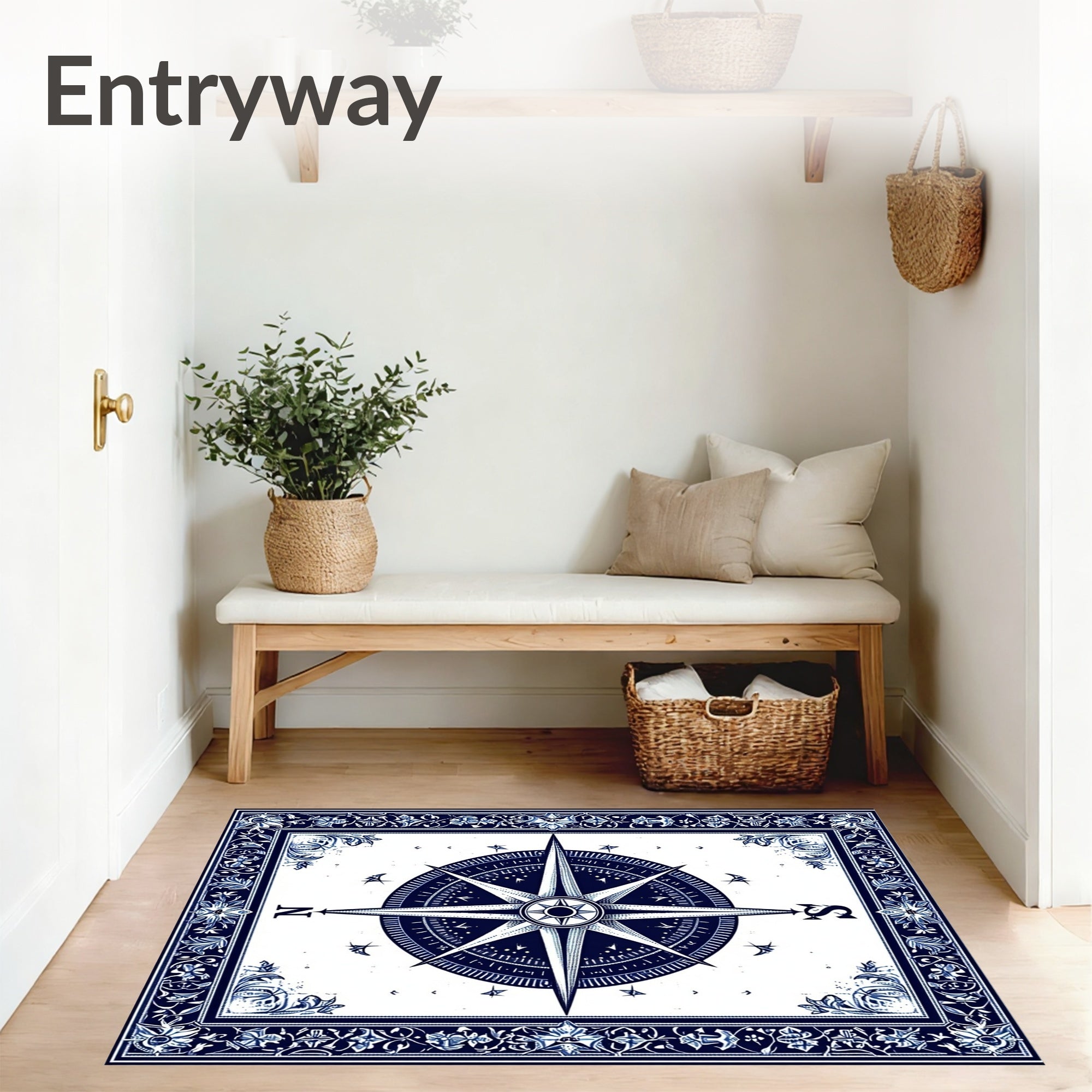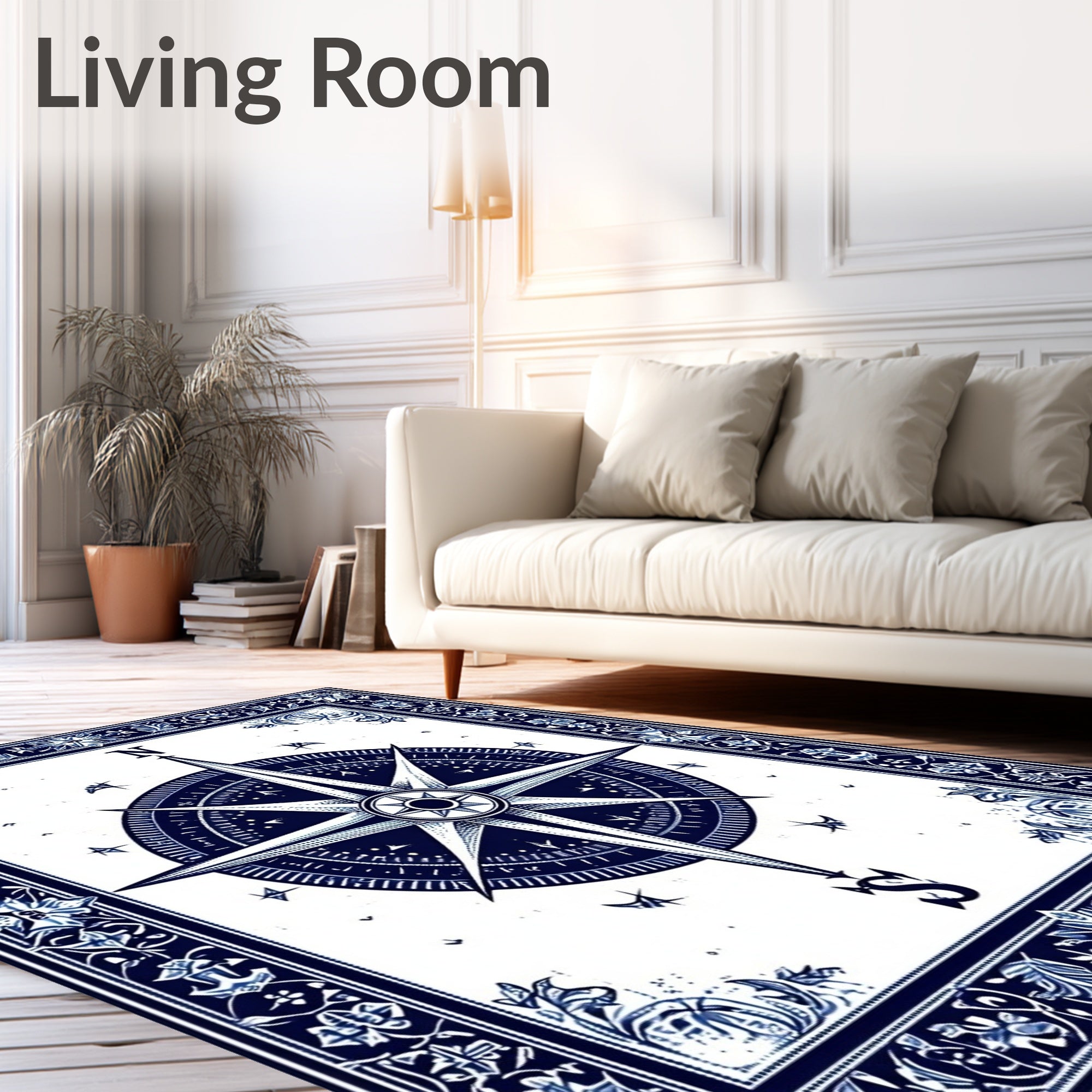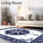 Ultra Soft Area Rug, Non Slip, Stain Resistant, Washable Area Rugs for Living Room, Bedroom, Beachy Compass Rug(Blue) Overview: