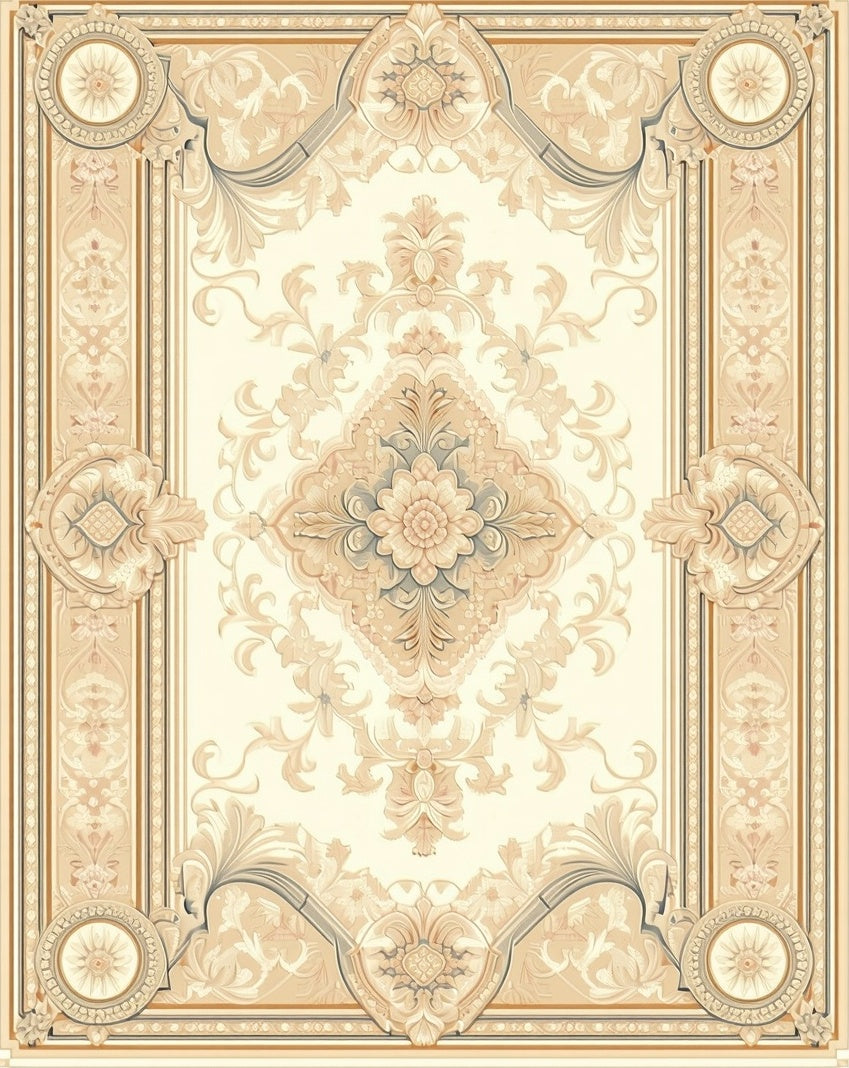 Beige and Cream Ornate Medallion with Refined Scroll Accents Flourishes(Beige)