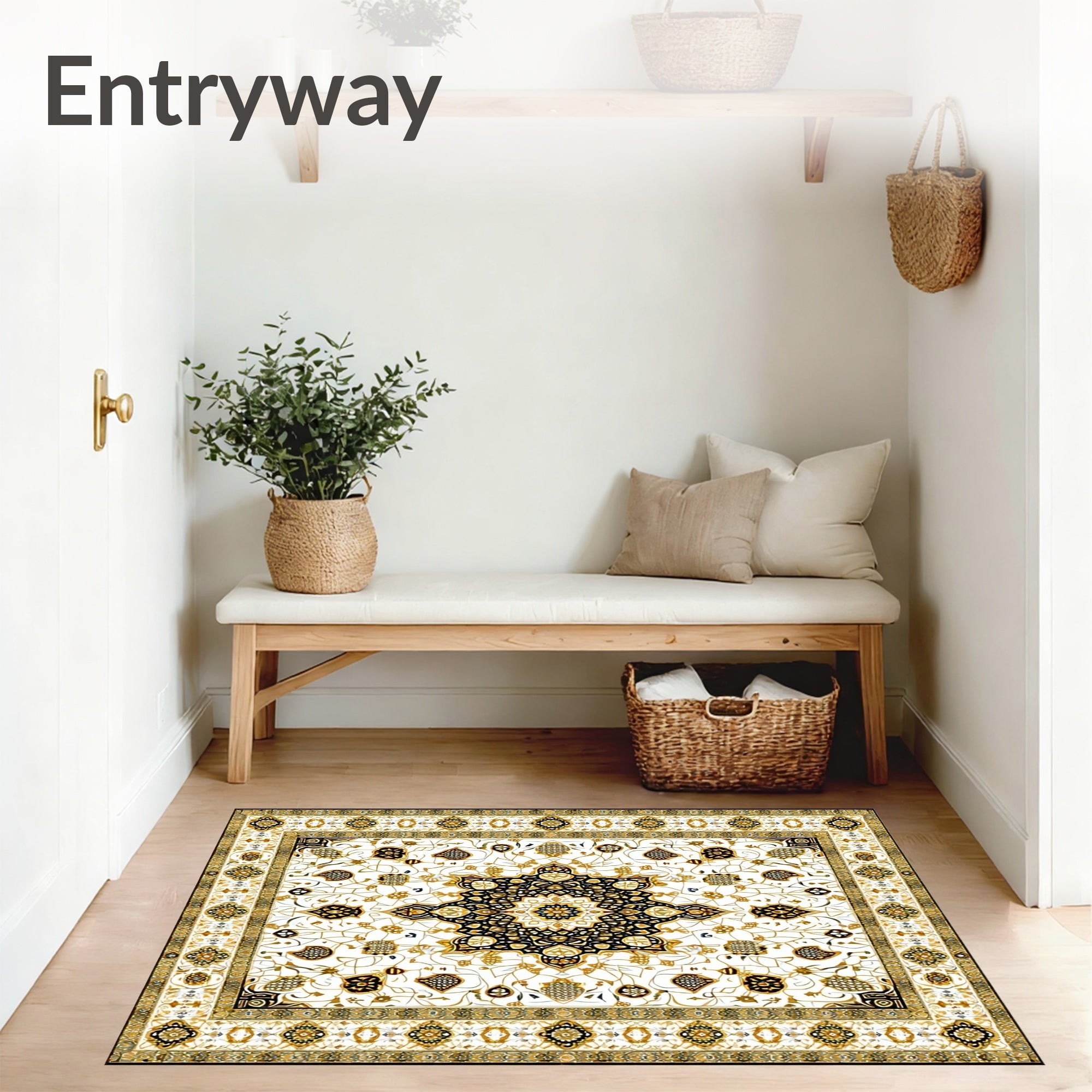 Ultra Soft Area Rug, Non Slip, Stain Resistant, Washable Area Rugs for Living Room, Bedroom, Beige and Mustard Patio(White) Overview: