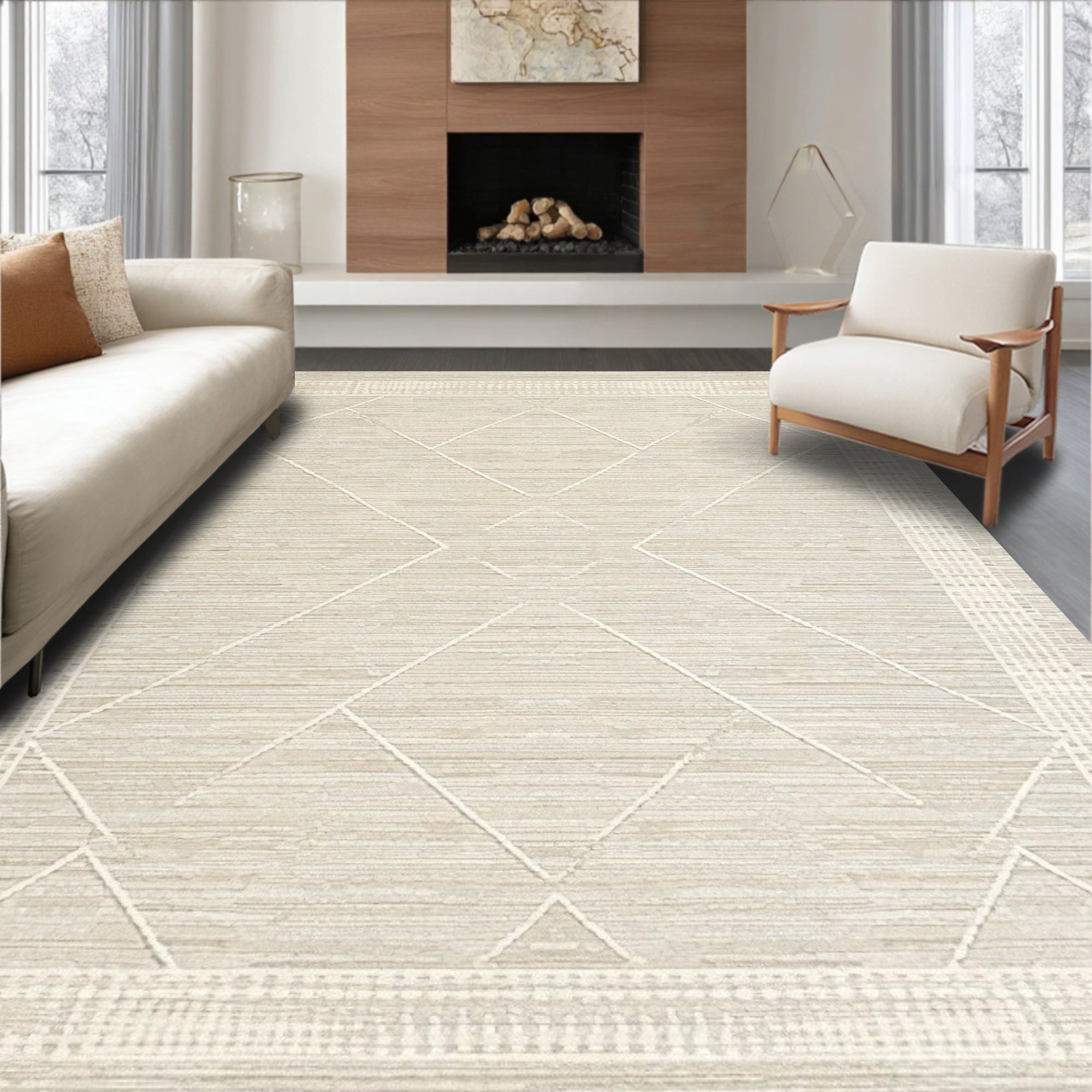Ultra Soft Area Rug, Non Slip, Stain Resistant, Washable Area Rugs for Living Room, Bedroom, Beige Area Low Profile Design(Beige) Overview: