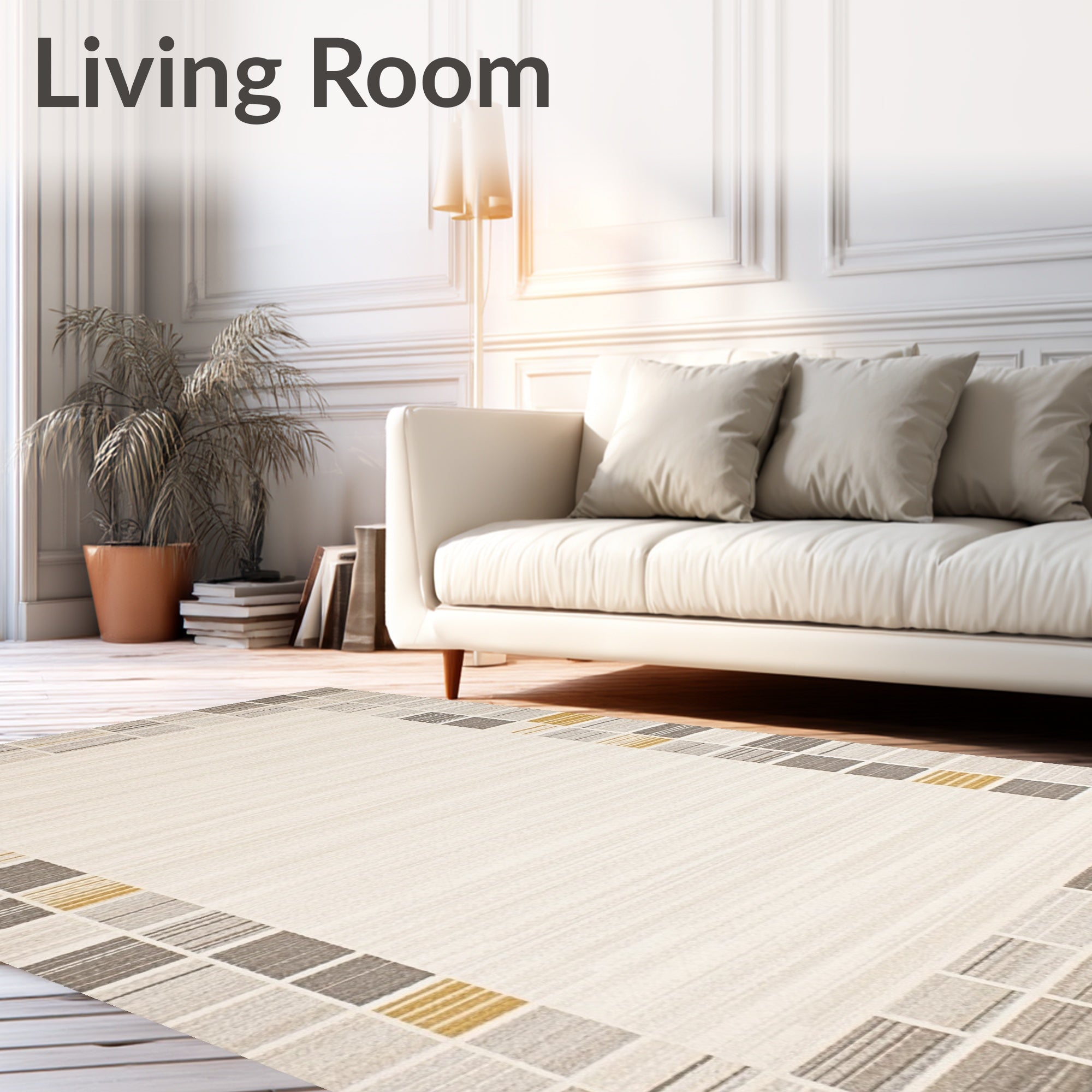 Ultra Soft Area Rug, Non Slip, Stain Resistant, Washable Area Rugs for Living Room, Bedroom, Beige Area Texture & Modern Geometric Border(Beige) Overview: