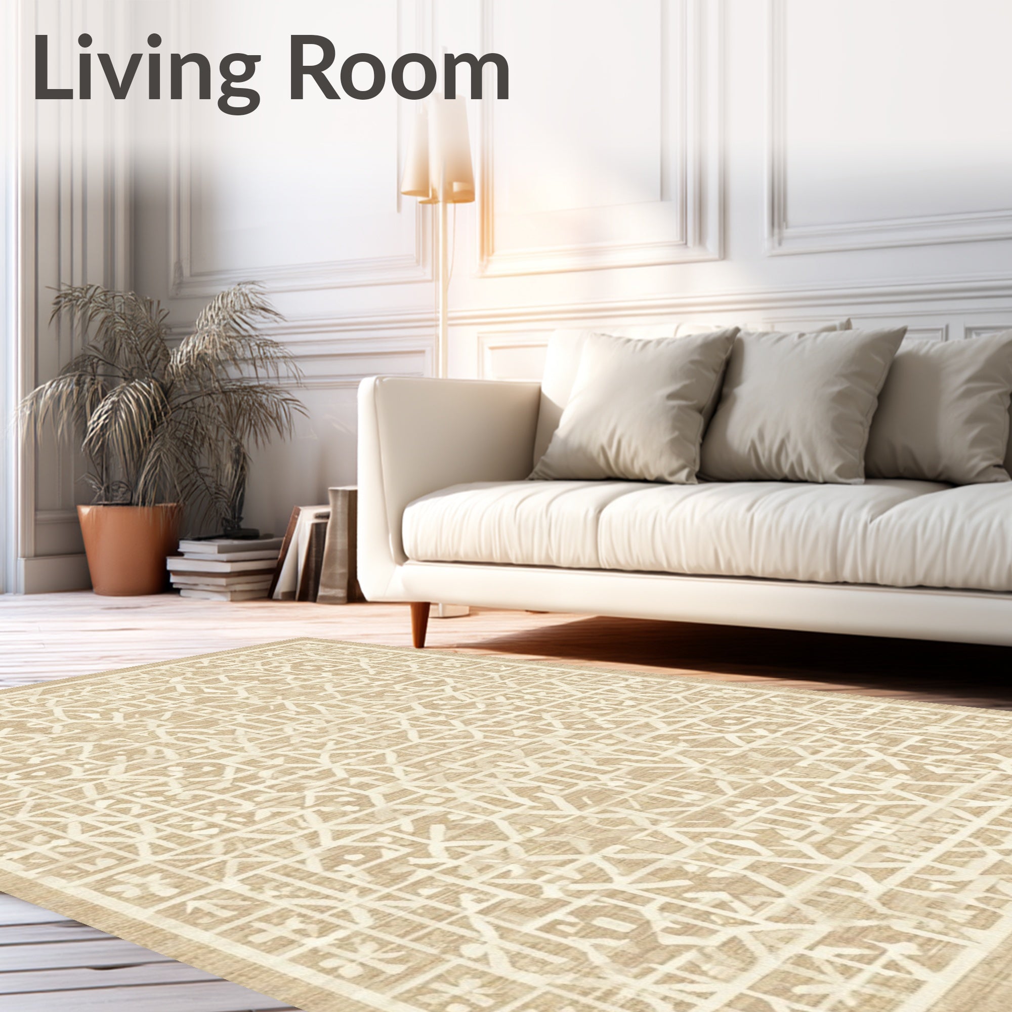 Ultra Soft Area Rug, Non Slip, Stain Resistant, Washable Area Rugs for Living Room, Bedroom, Beige Artistic Lattice Sophisticated Floor Covering(Beige) Overview: