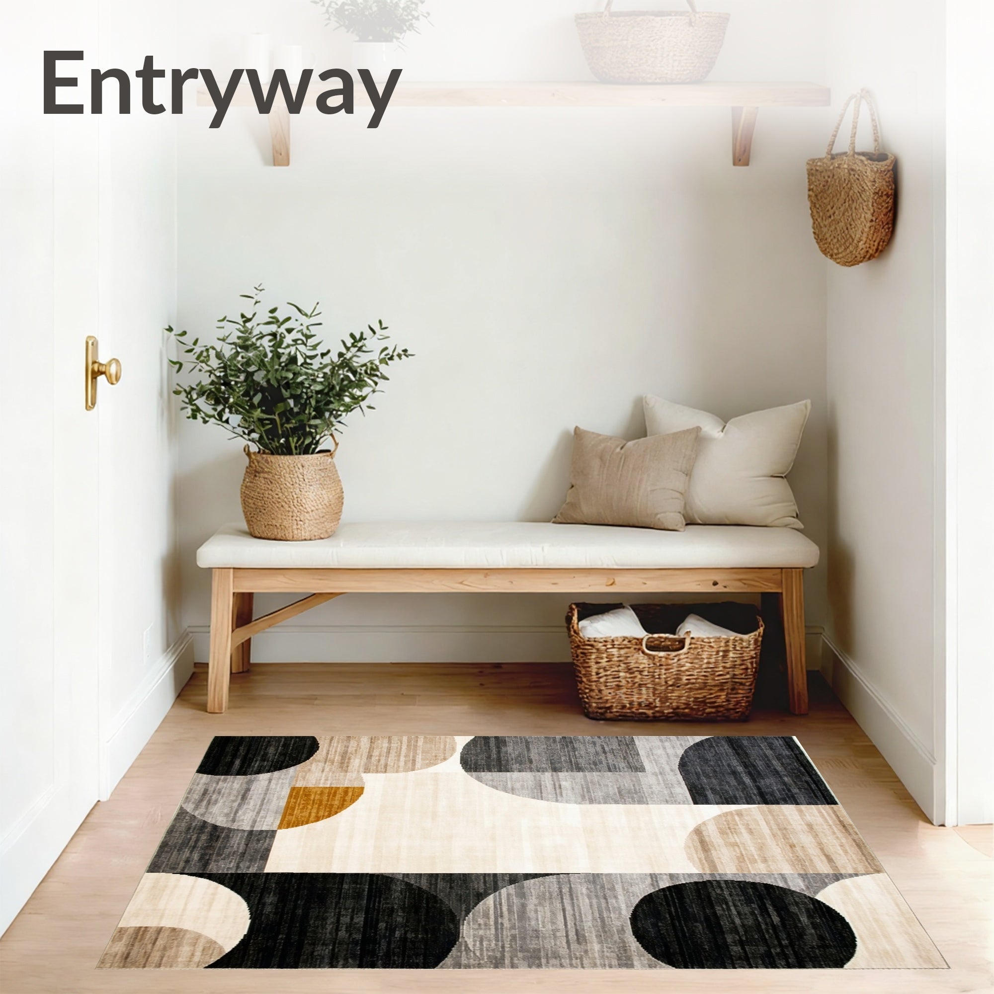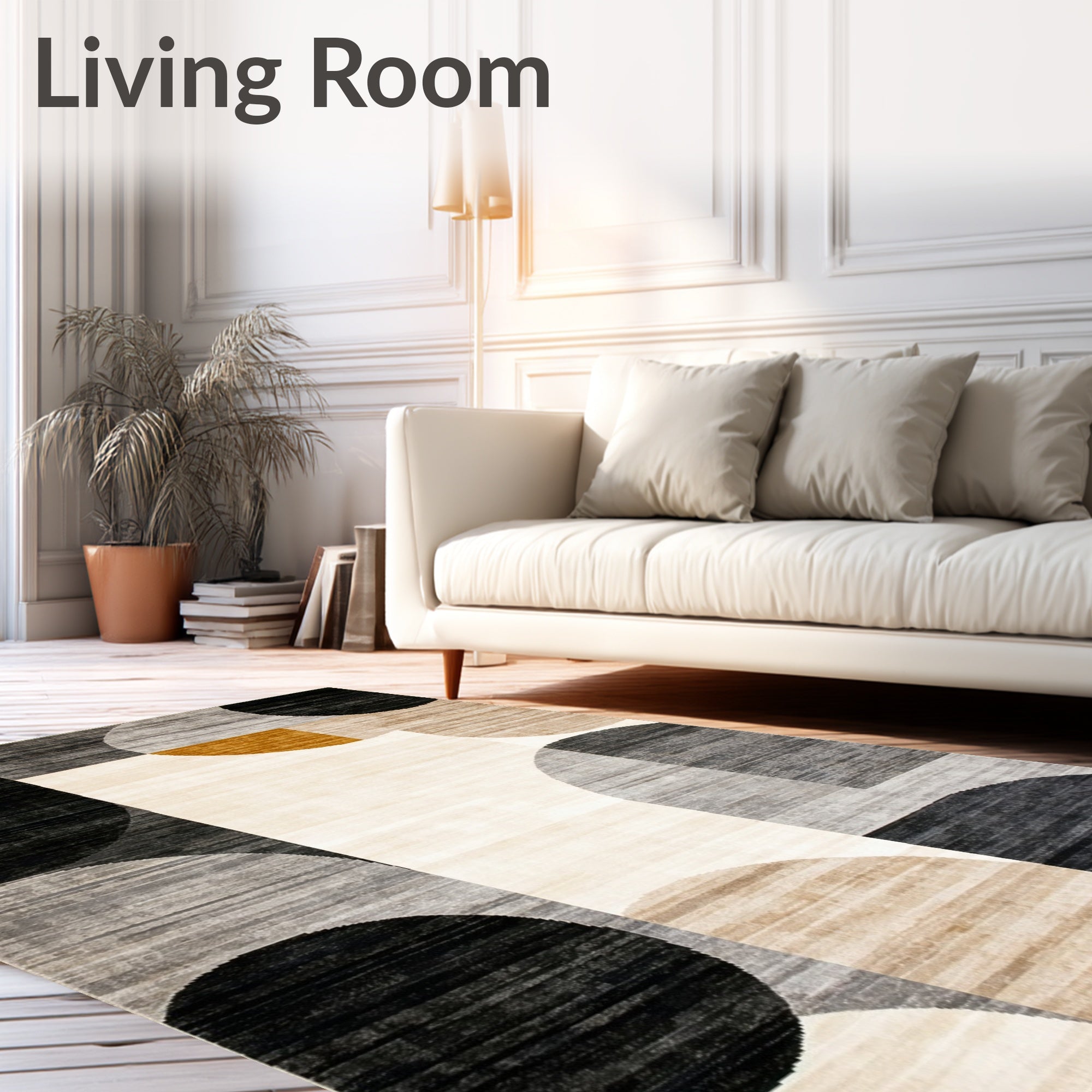 Ultra Soft Area Rug, Non Slip, Stain Resistant, Washable Area Rugs for Living Room, Bedroom, Beige Black Abstract Modern Geometric Circles Area Design(Gray) Overview: