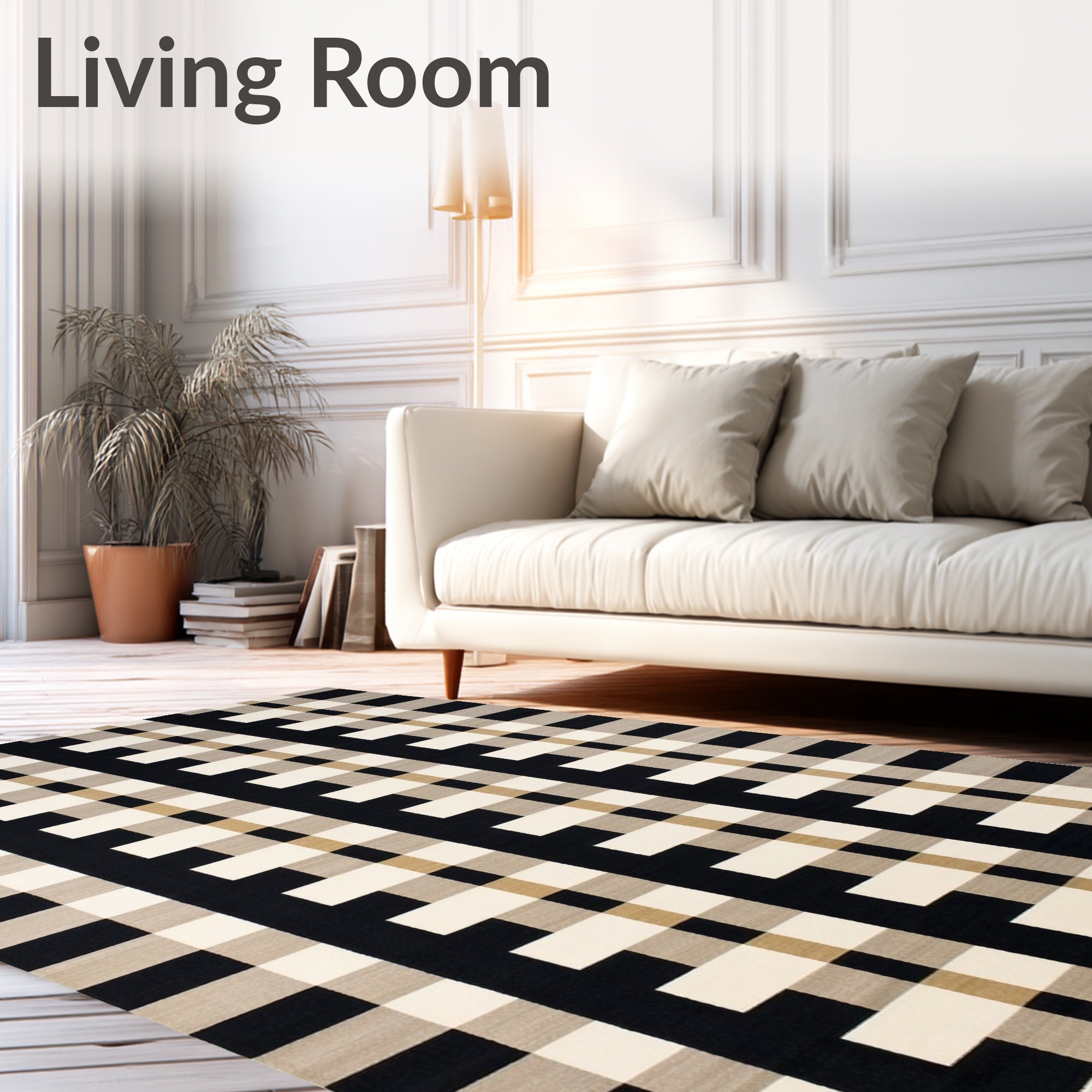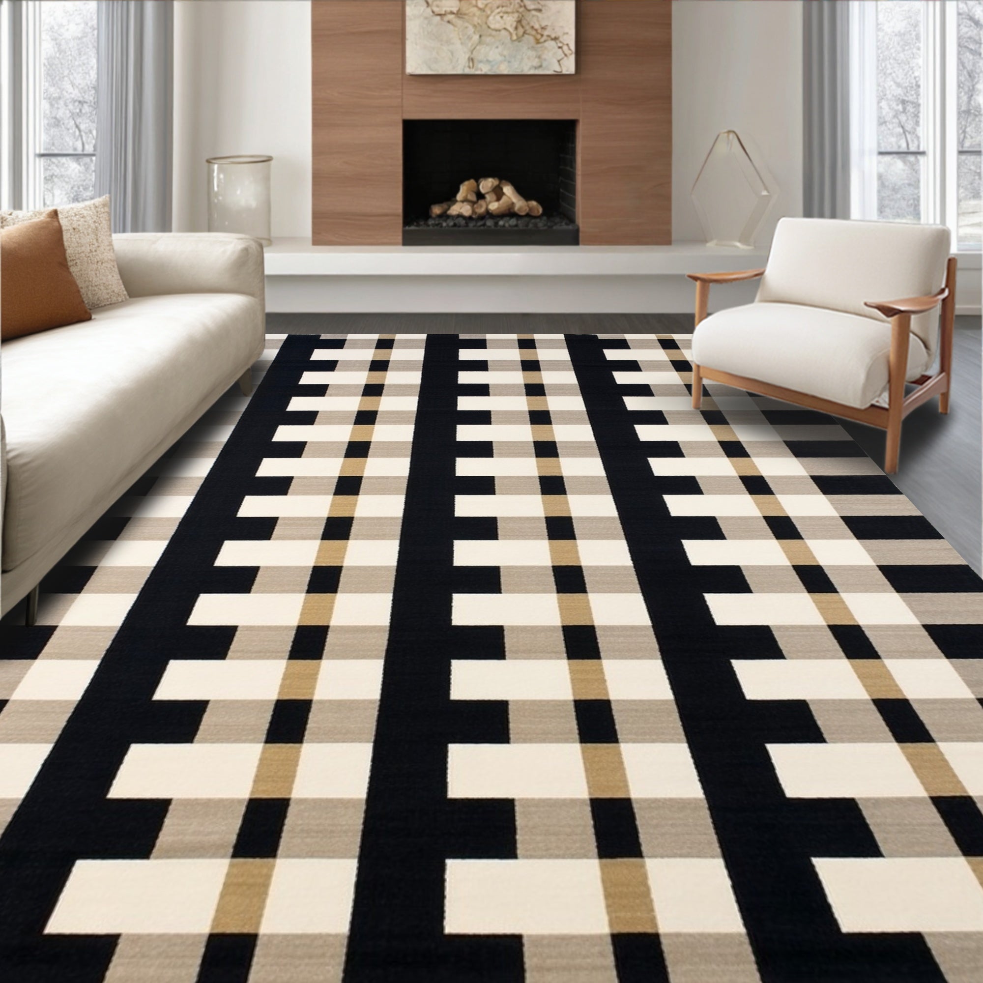 Ultra Soft Area Rug, Non Slip, Stain Resistant, Washable Area Rugs for Living Room, Bedroom, Beige Black Grid Checkerboard Area for Unique Kitchen Aesthetics(Black) Overview: