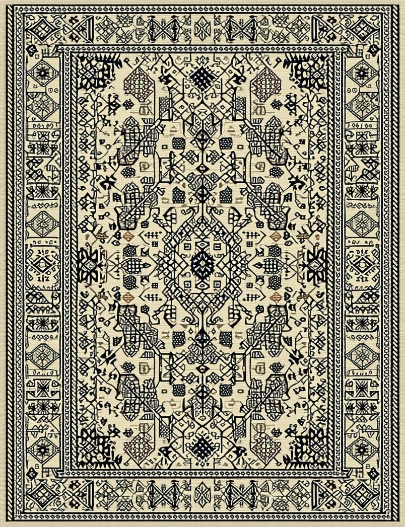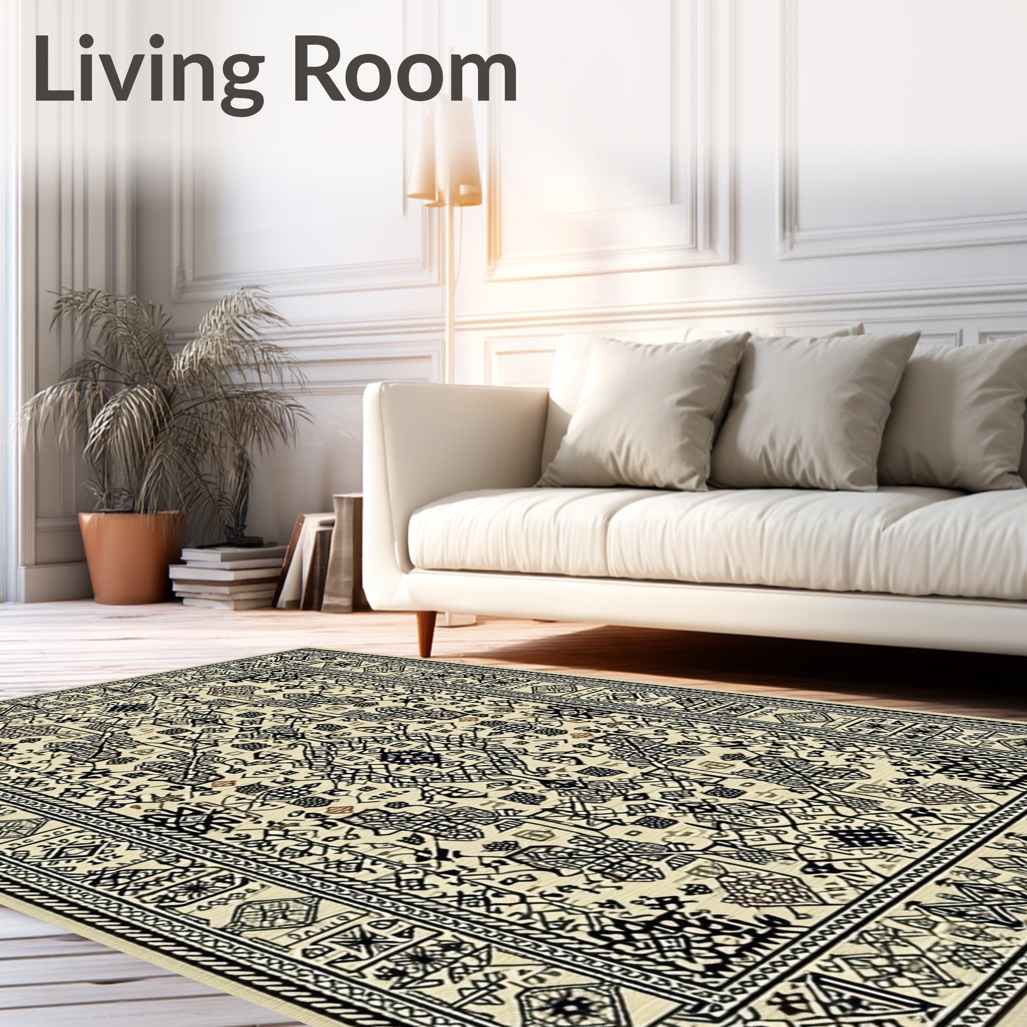 Ultra Soft Area Rug, Non Slip, Stain Resistant, Washable Area Rugs for Living Room, Bedroom, Beige Black Sisal Abstract Geometric Design(Beige) Overview: