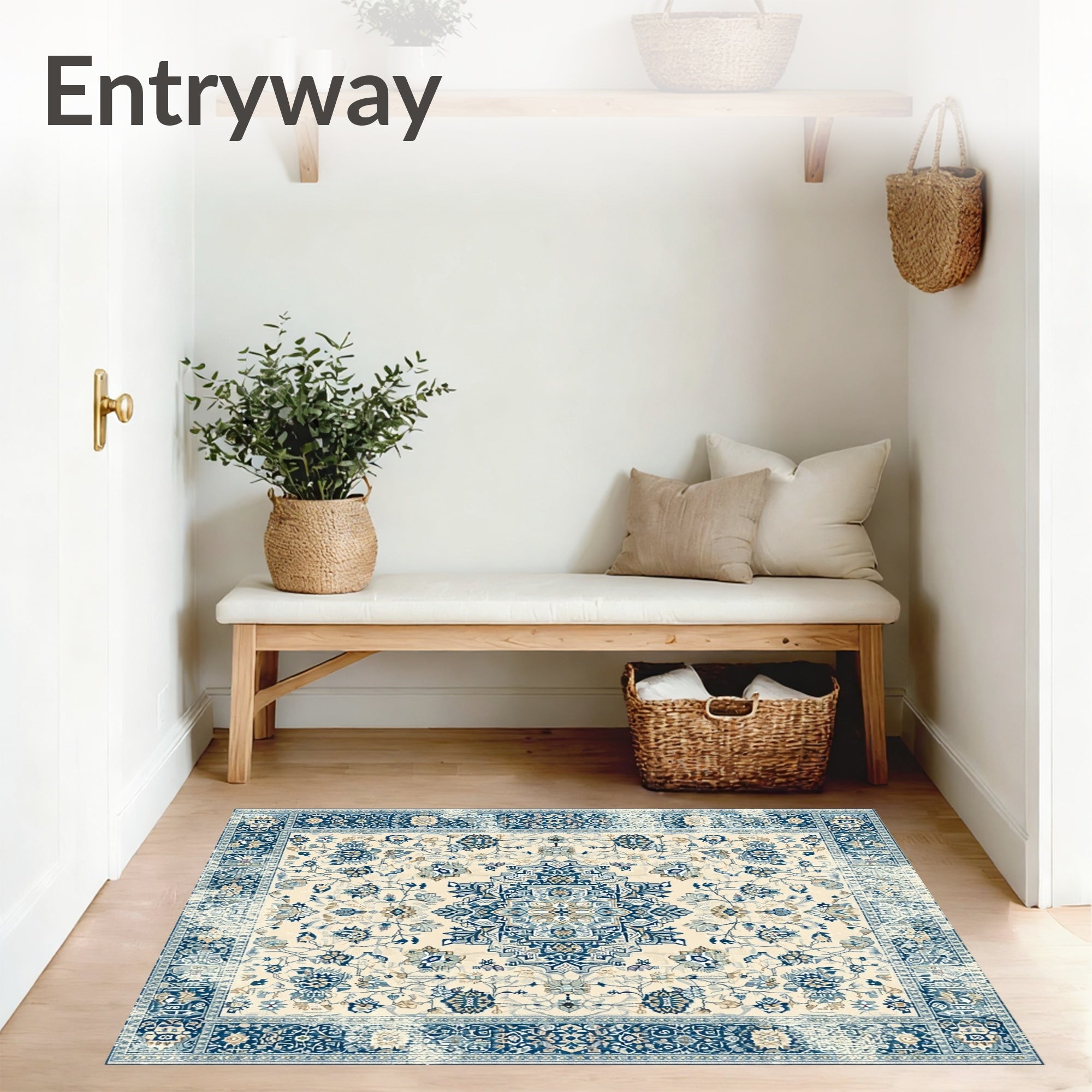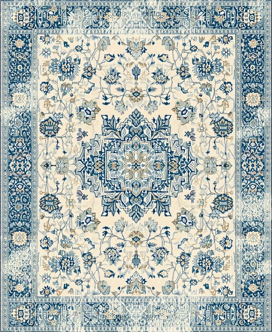 Ultra Soft Area Rug, Non Slip, Stain Resistant, Washable Area Rugs for Living Room, Bedroom, Beige Blue Area Vintage Farmhouse(Beige) Overview: