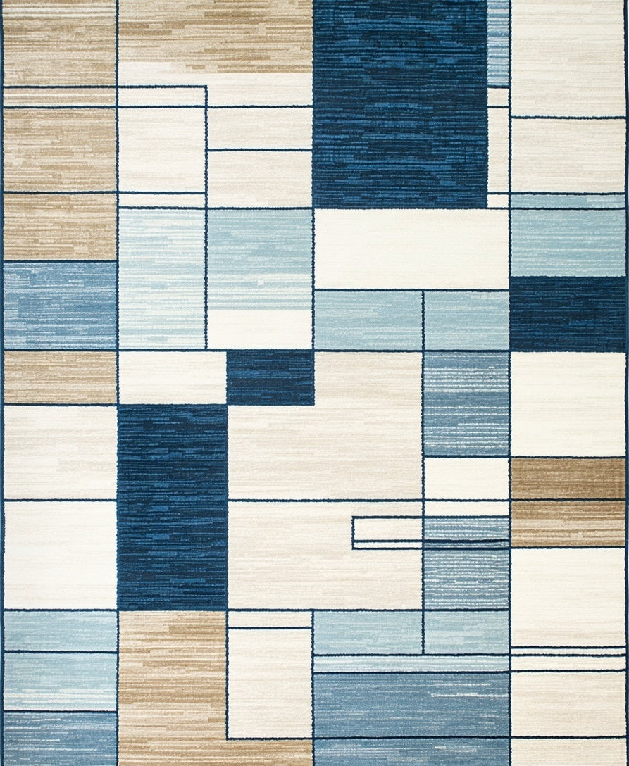 Beige Blue Geo Patchwork Area Modern Floor Art for Home(Beige)