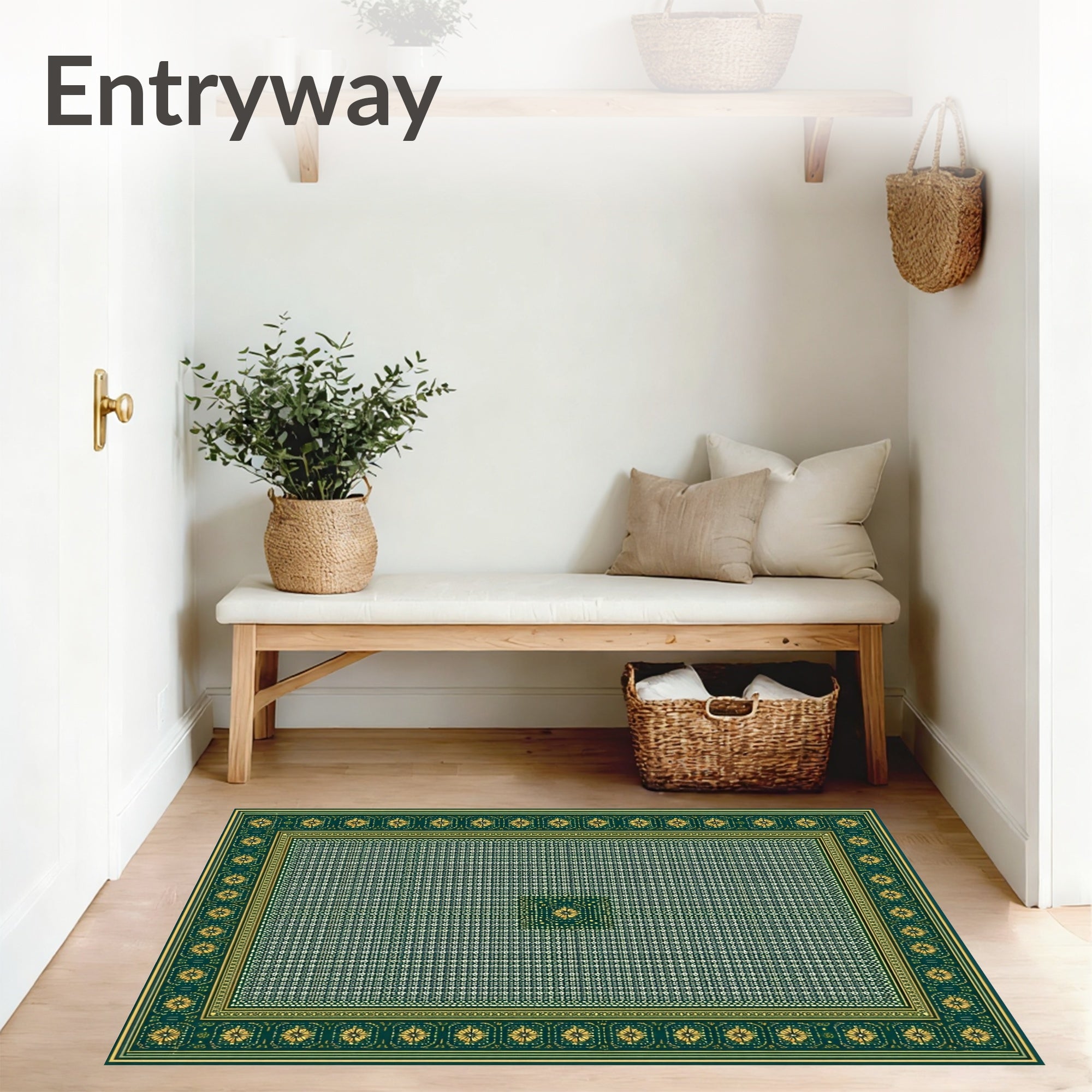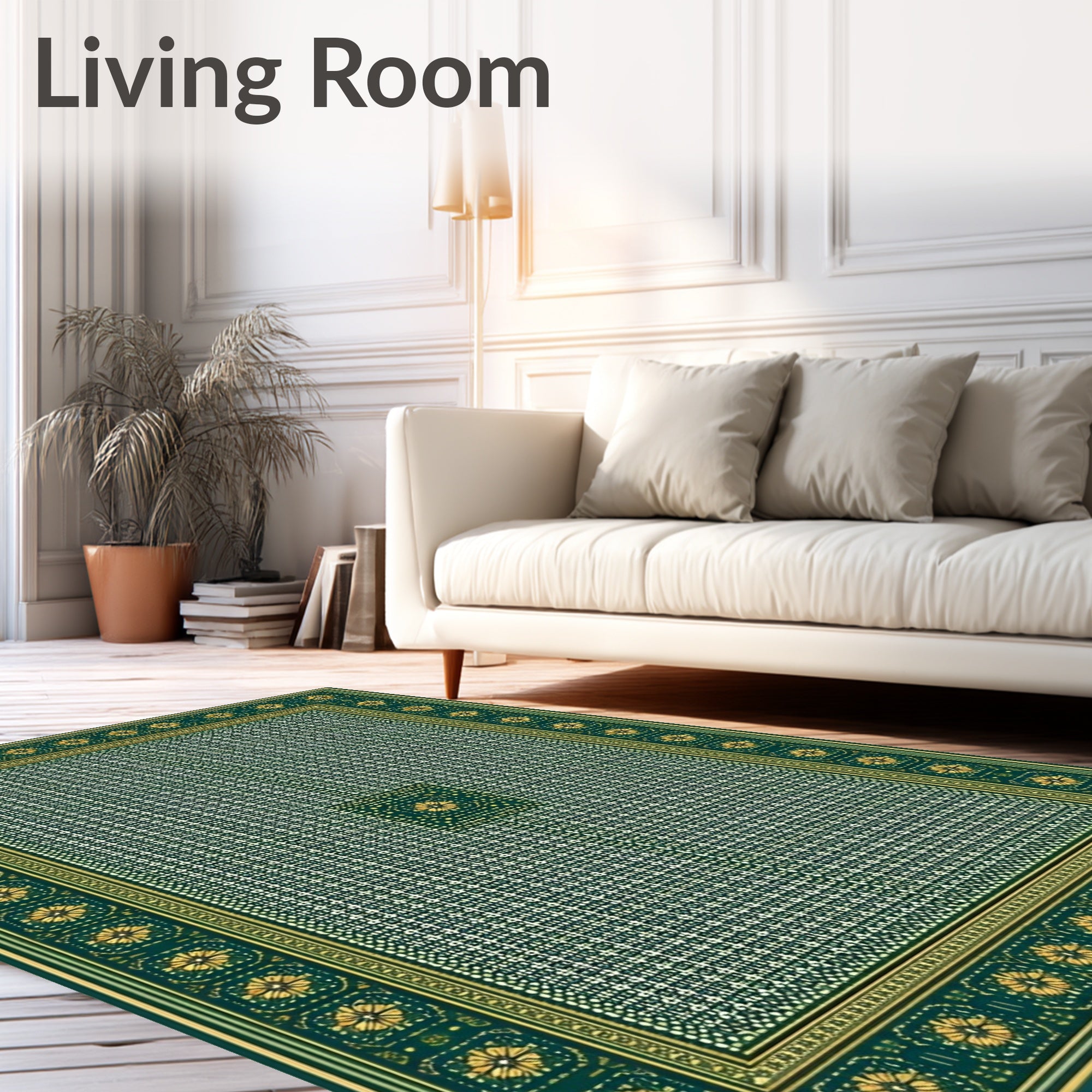 Ultra Soft Area Rug, Non Slip, Stain Resistant, Washable Area Rugs for Living Room, Bedroom, Beige Blue Geometric(Green) Overview:
