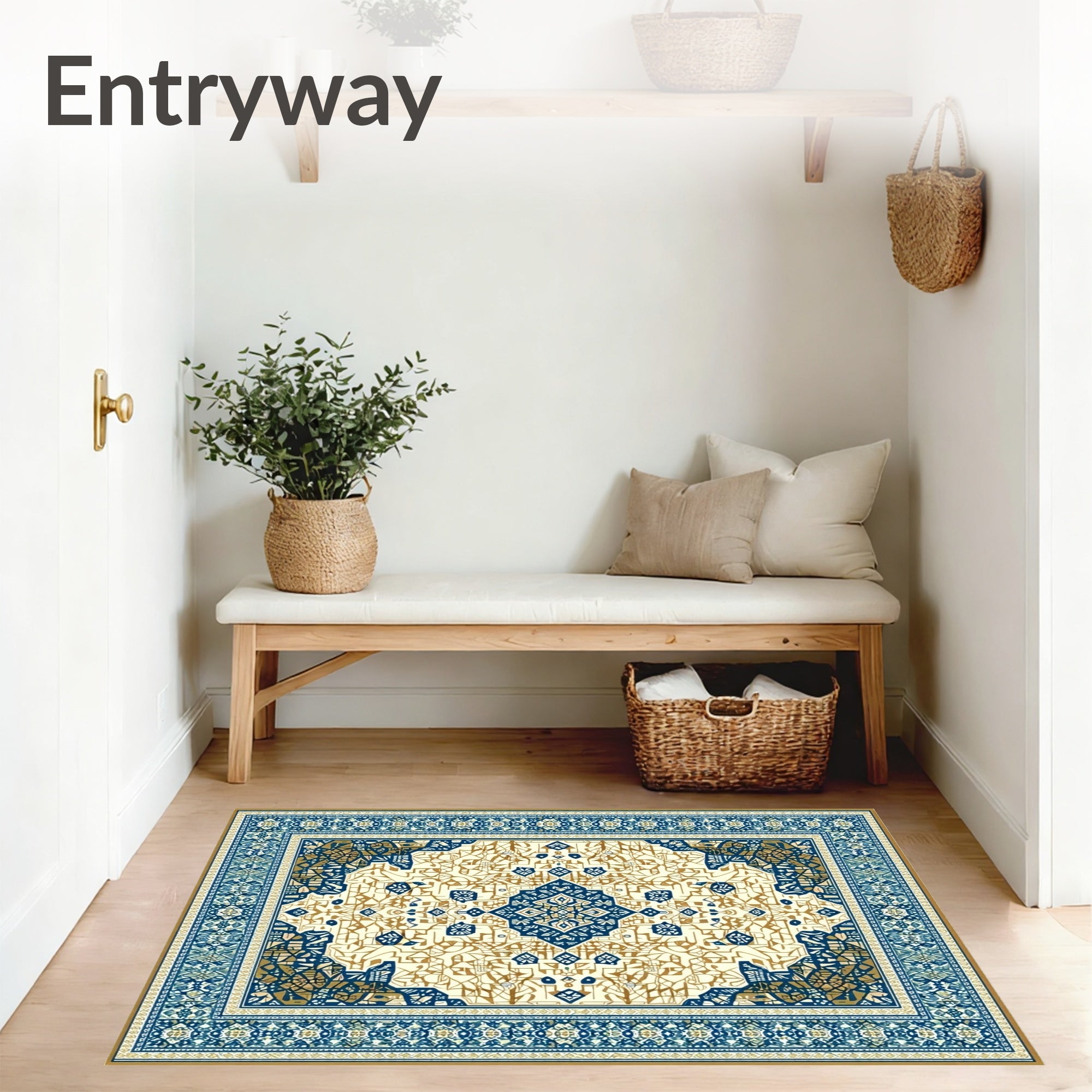 Ultra Soft Area Rug, Non Slip, Stain Resistant, Washable Area Rugs for Living Room, Bedroom, Beige Blue Kitchen Area(Beige) Overview: