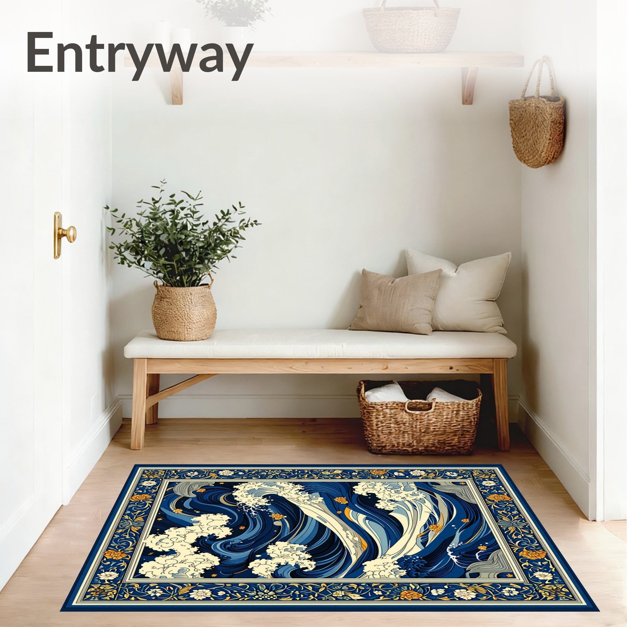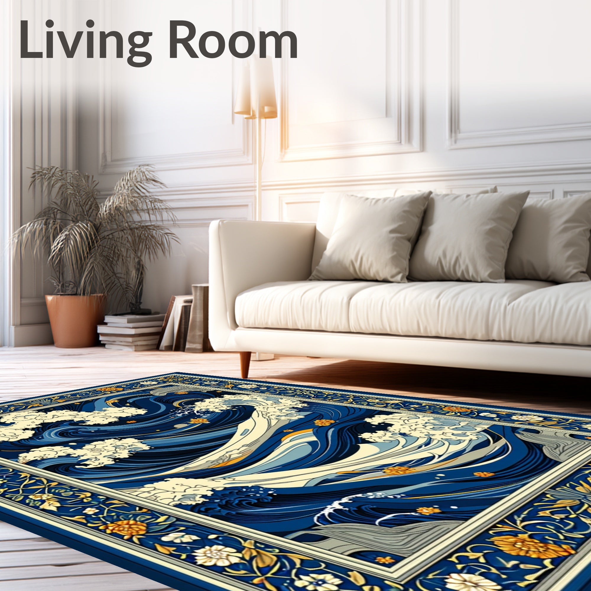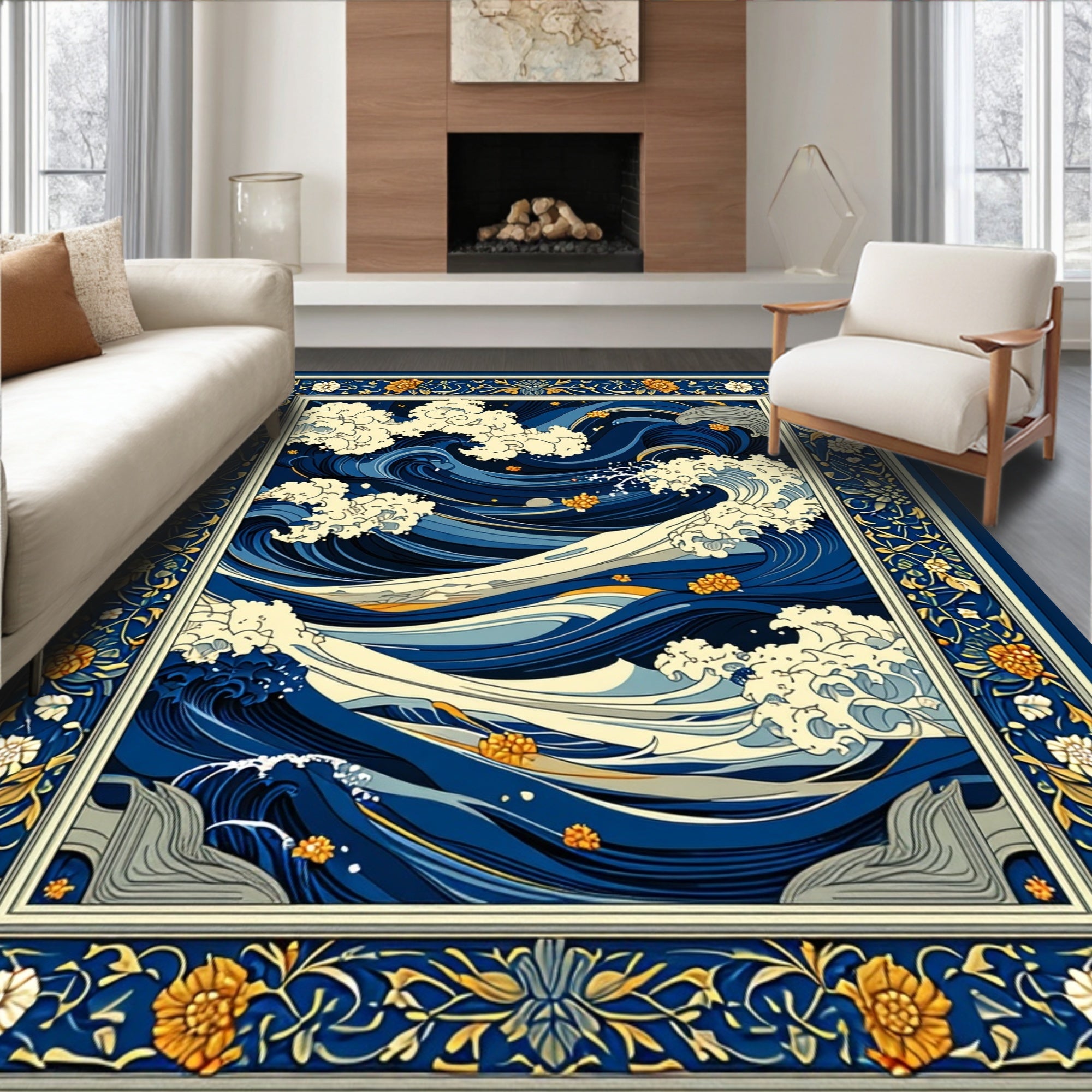 Flatwoven High Traffic Area Rug, Beige Ocean Wave, Non Slip, Stain Resistant, Washable Area Rugs for Living Room, Bedroom (Blue) Overview: